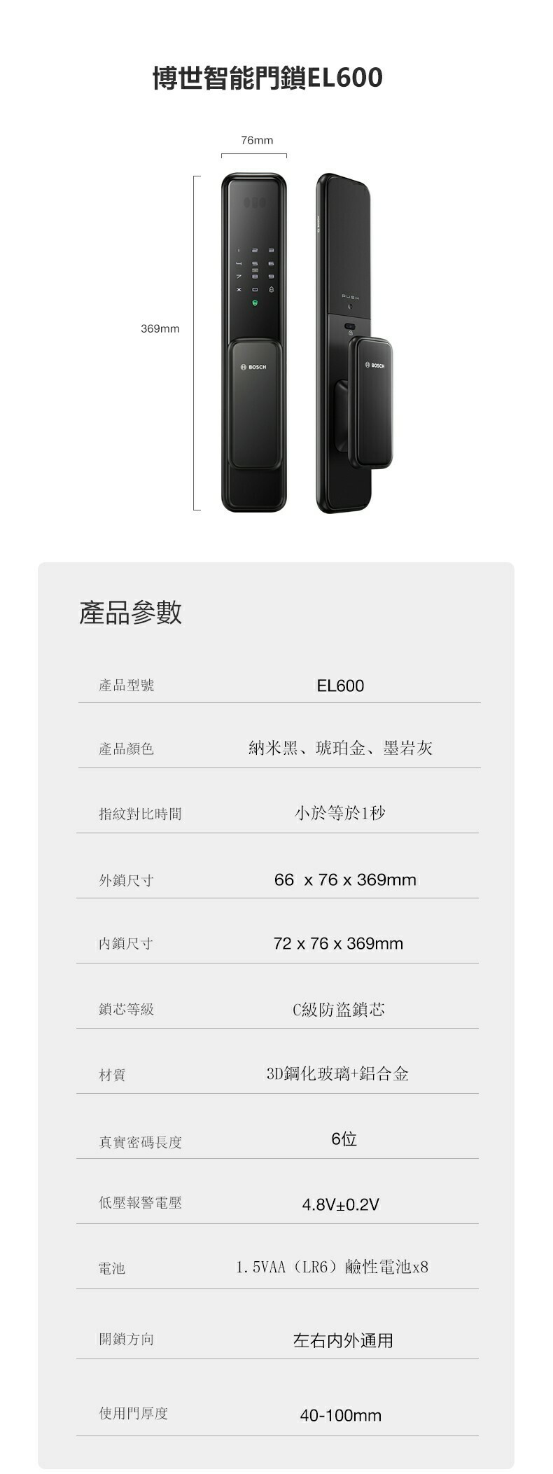 Bosch EL600F‧Elite Series Smart Door Lock‧2-year limited warranty‧