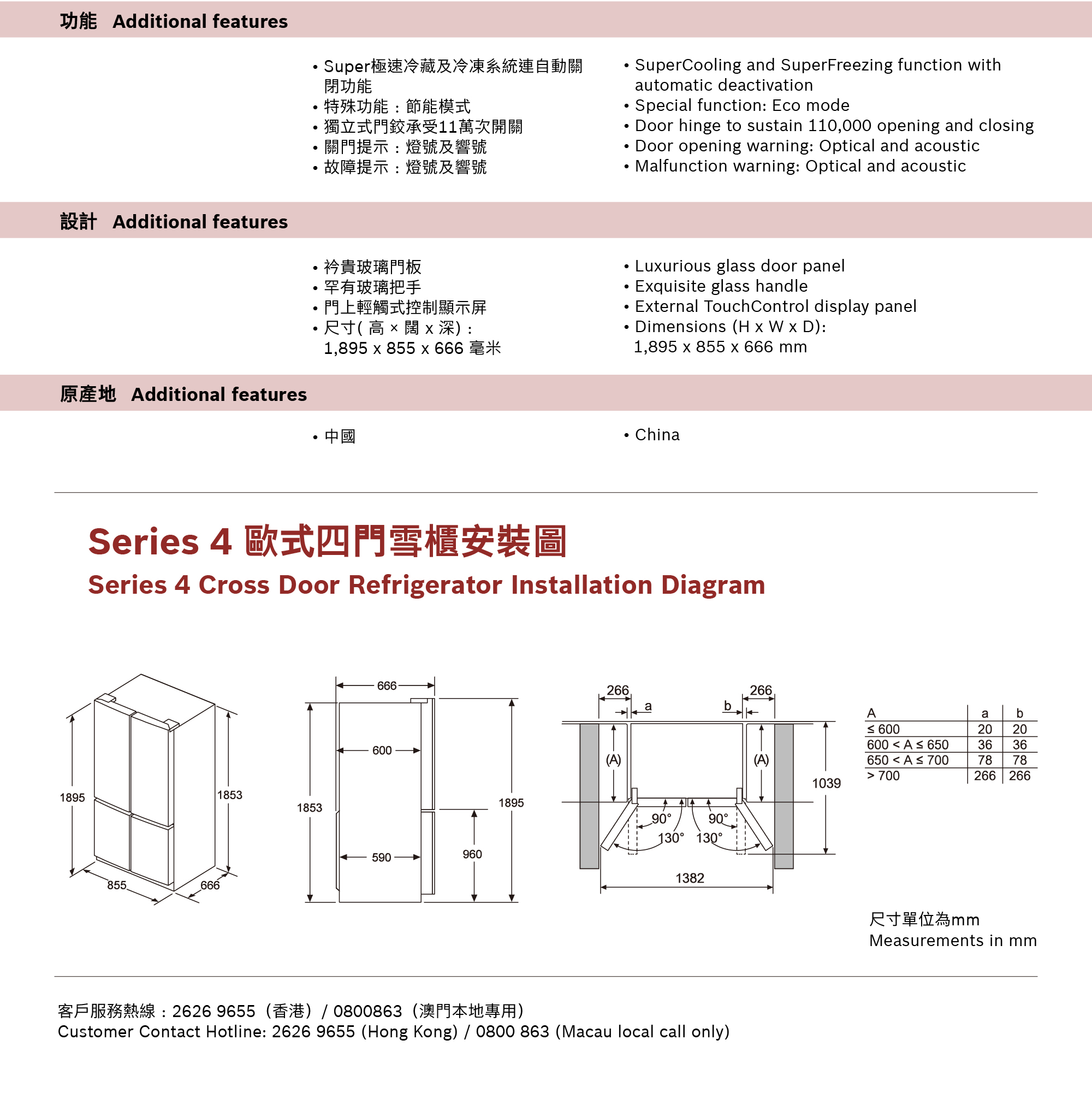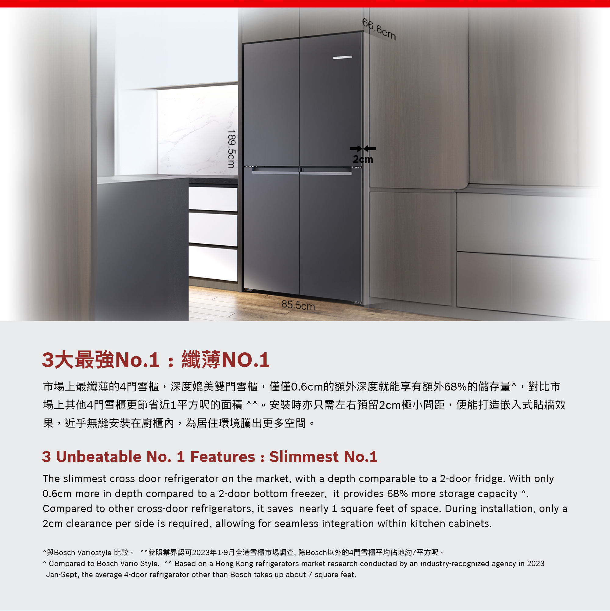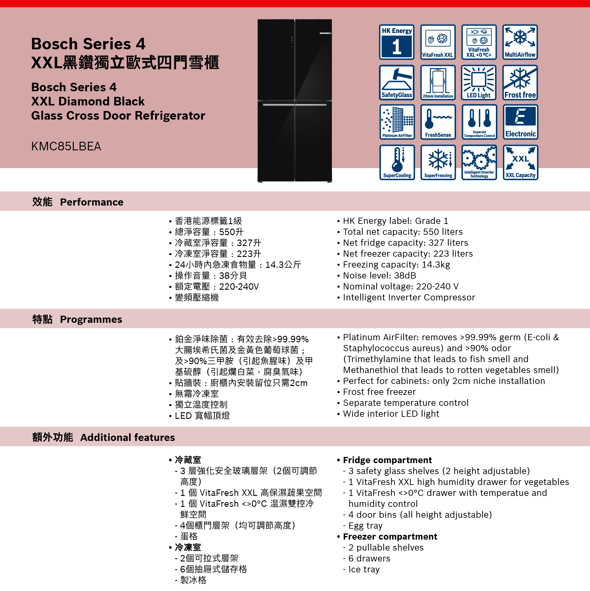 Bosch KMC85LBEA‧Inverter Series 4 Cross-door Refrigerator‧550L‧2-year limited warranty‧