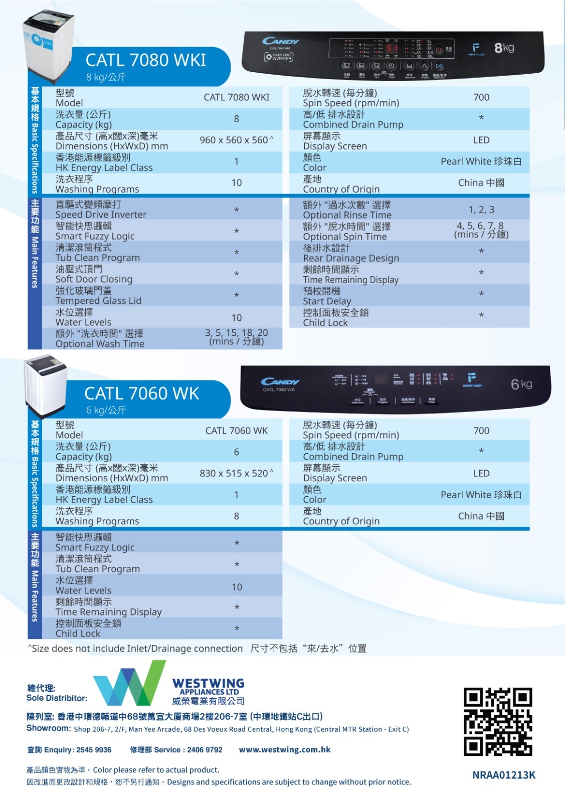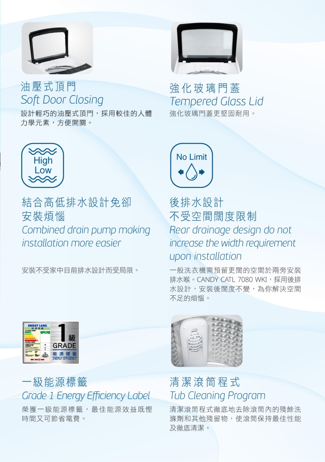 Candy CATL7080WK1‧Tub Washer (combined drain Pump)‧8Kg‧2-year limited warranty‧