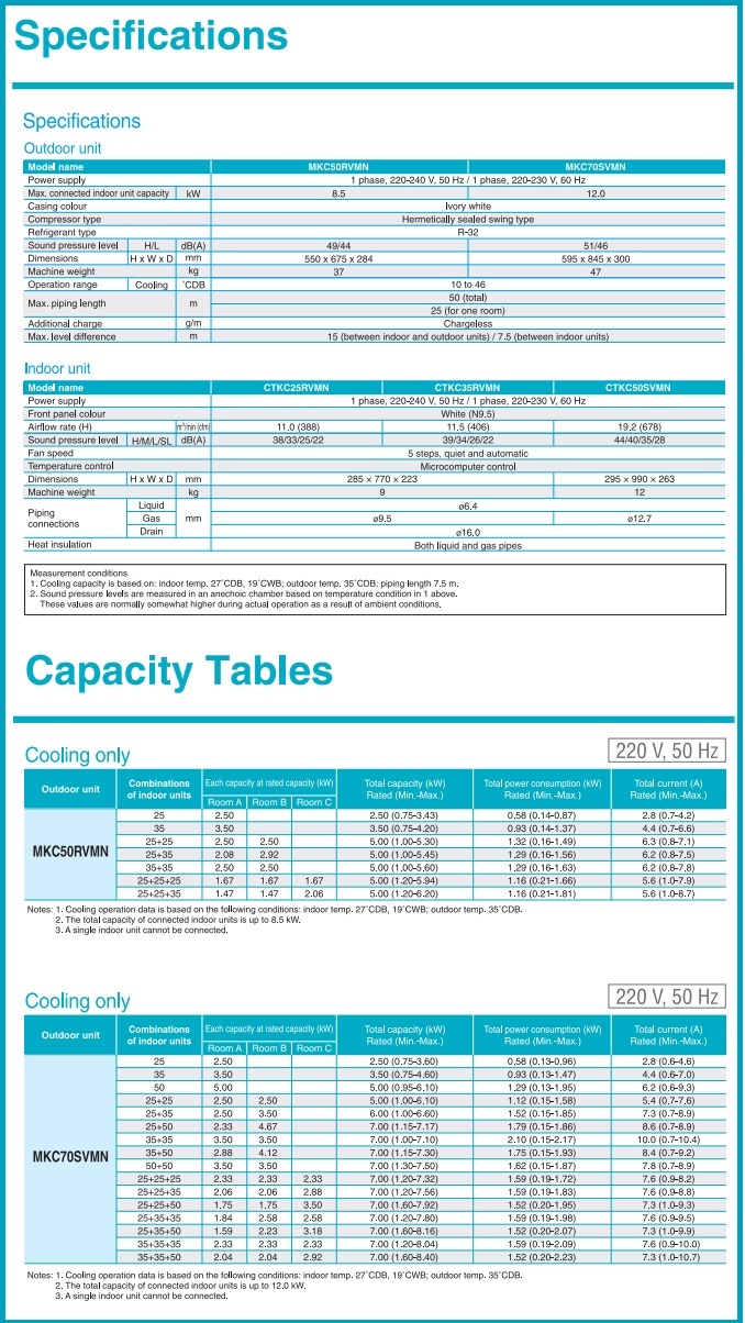 Optional outdoor unit model : MKC50RVMN / MKC70SVMN