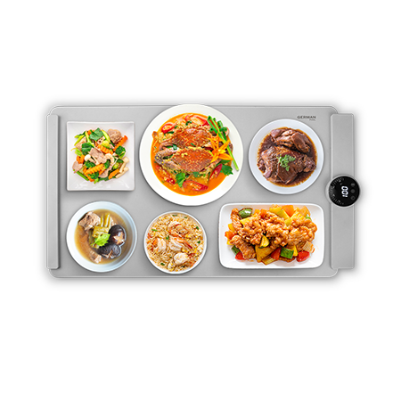 All-zone heating surface means there is no limit to the size of pots or plates to be warmed. The mat can keep 6 dishes or more warmed at the same time; advanced heating element can warm any heat-resistant utensil including ranging from ceramic, metal, stainless steel porcelain.