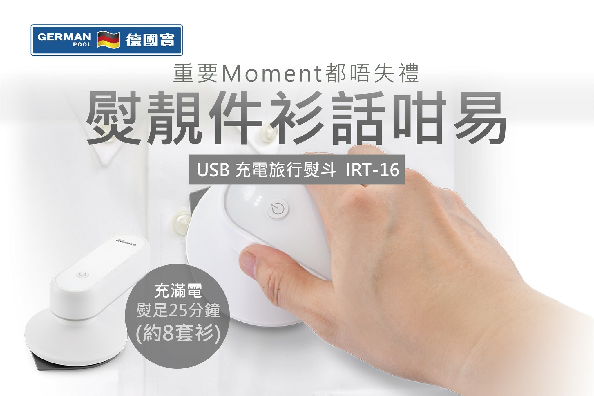 The ultra compact German Pool USB Portable Travel Iron charges by USB, and takes only 30 seconds to heat up. Weighing only around 310g, it is simple to use and takes up practically no luggage space!