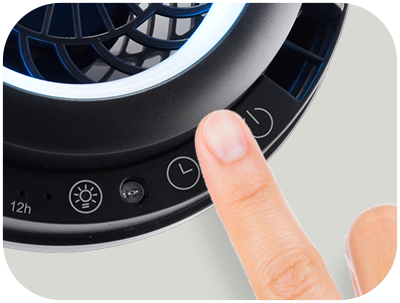 When your room is dark, the Light Sensor will trigger the Mosquito Trap, and it will start luring mosquitoes. You can set a 5-, 8- and 12-hour timer for a good night's sleep. If you don’t, the system will turn off during daytime when your room gets bright again, saving you the trouble of manually switching it on and off.