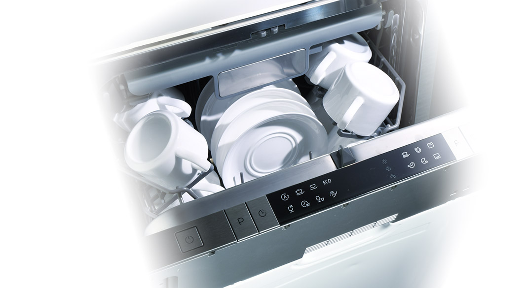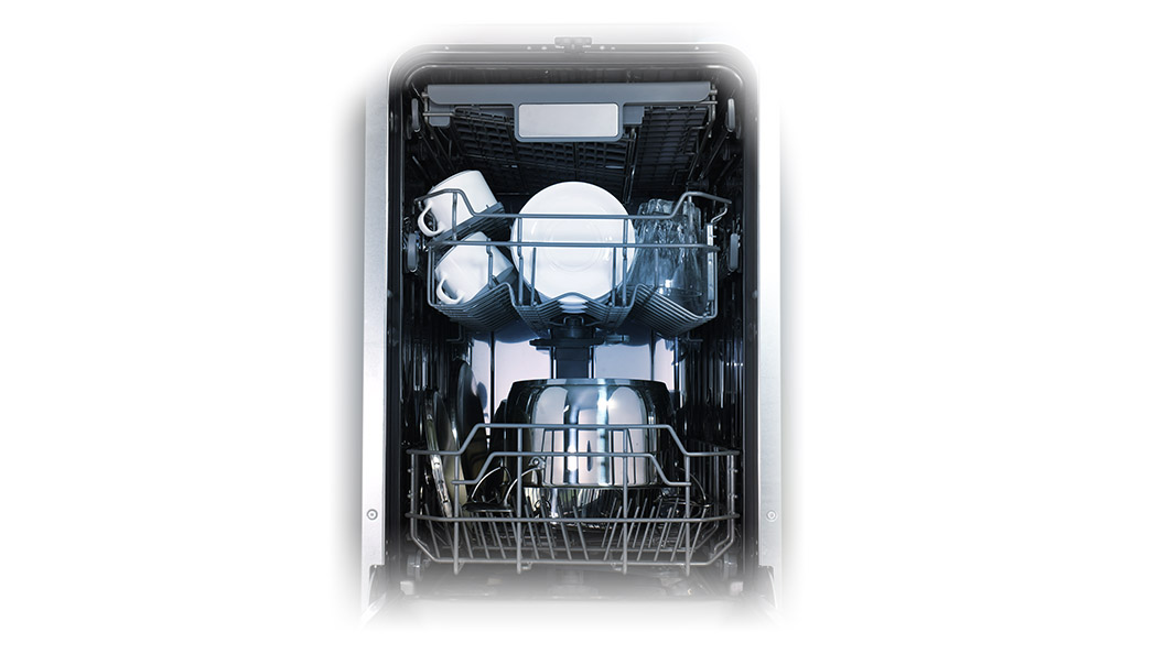 Slim 450 dish washer built with a large interior. Dual layer designed innovative basket system maximizing the space inside. Washing a 9 person load will be quick and simple.