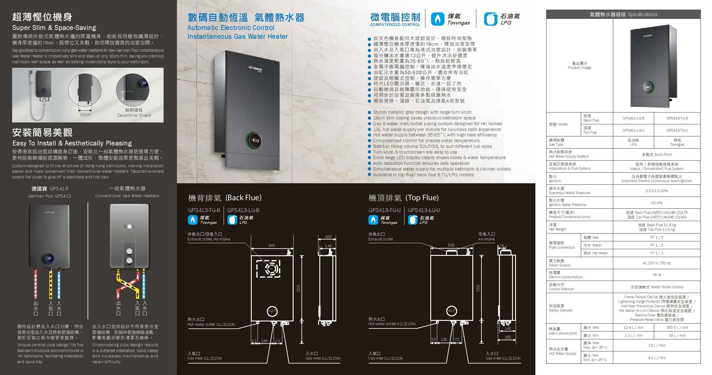 German Pool GPS413-TG‧Instantaneous Gas Water Heater‧TG gas‧13L‧1-year limited warranty‧