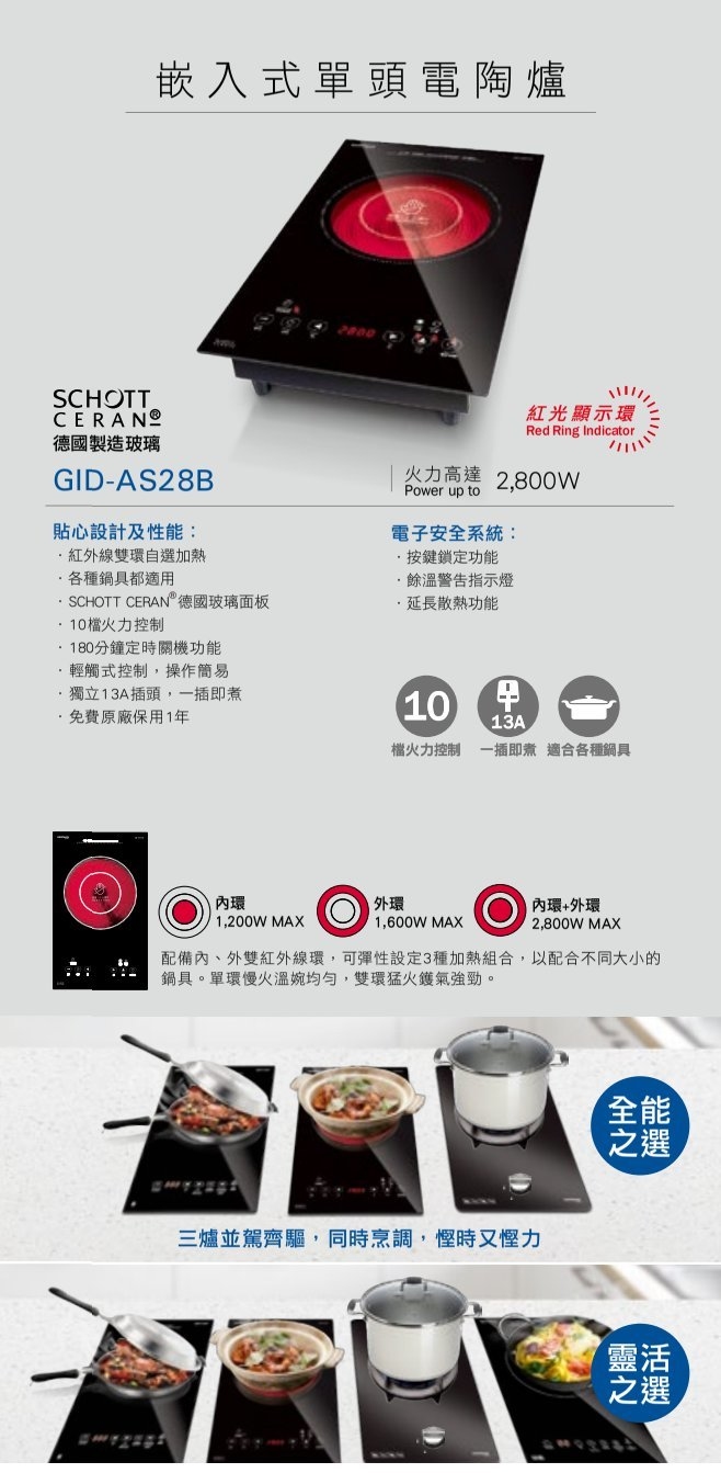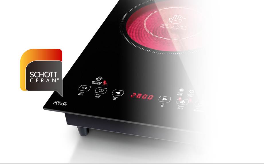 German SCHOTT CERAN® glass-ceramic is heat-resistant up to 750°C, and transmits heat to only cookware. The touch panel is always safe to use.