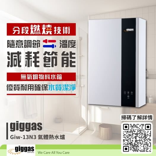 Giggas GIW-13N3‧Smart Gas Water Heater‧13L‧TG‧LPS‧1-year limited warranty‧Free free inspection‧