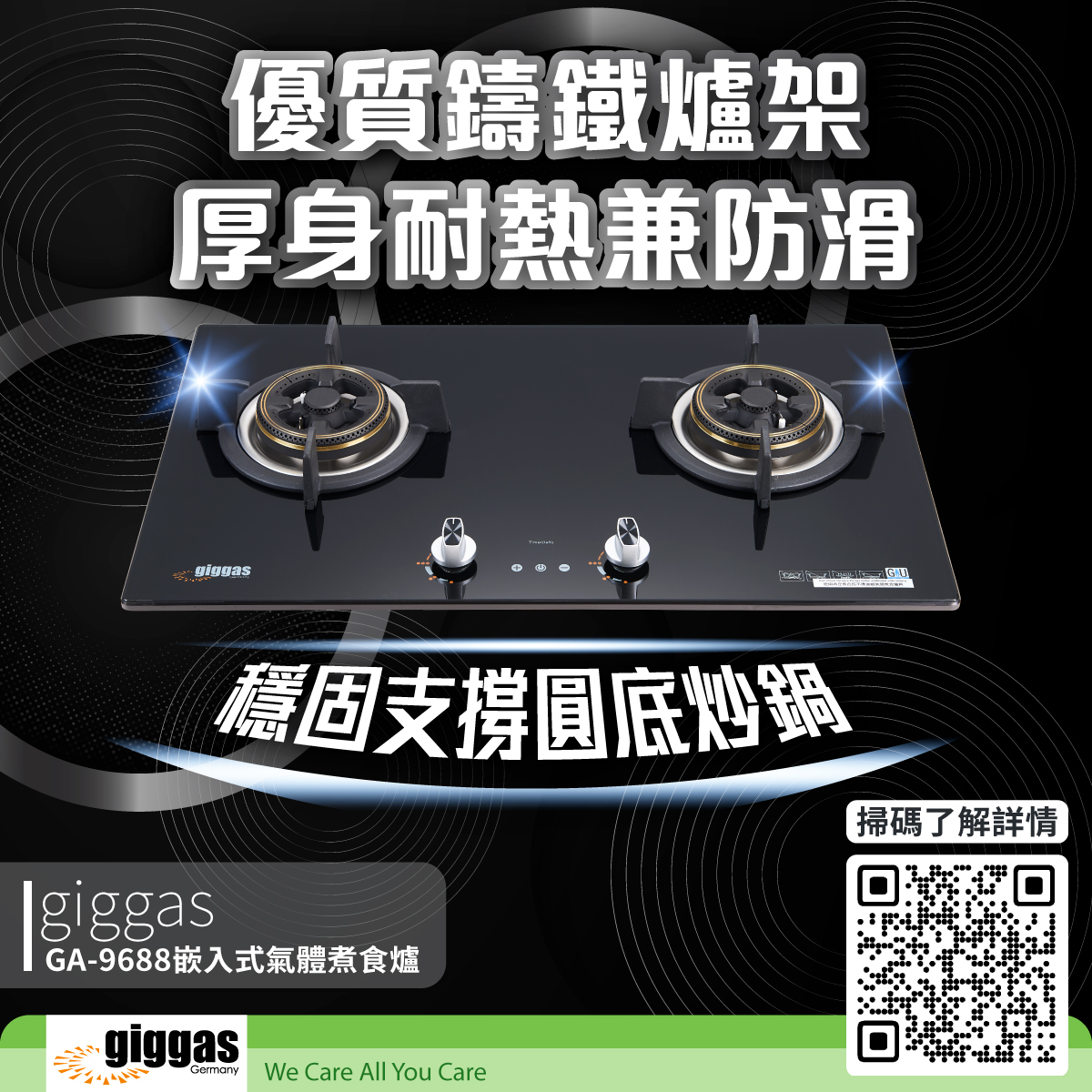 Giggas GA-9688II‧Double Burner Built-in Hob‧HK Town Gas‧LPS‧1-year limited warranty‧