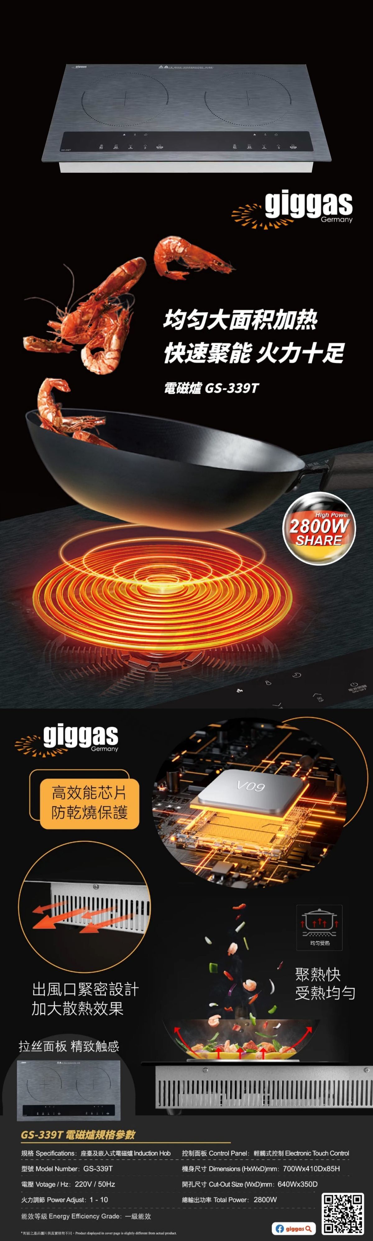 Giggas GS-339T‧Professional Induction Hobs‧2800W‧1-year limited warranty‧