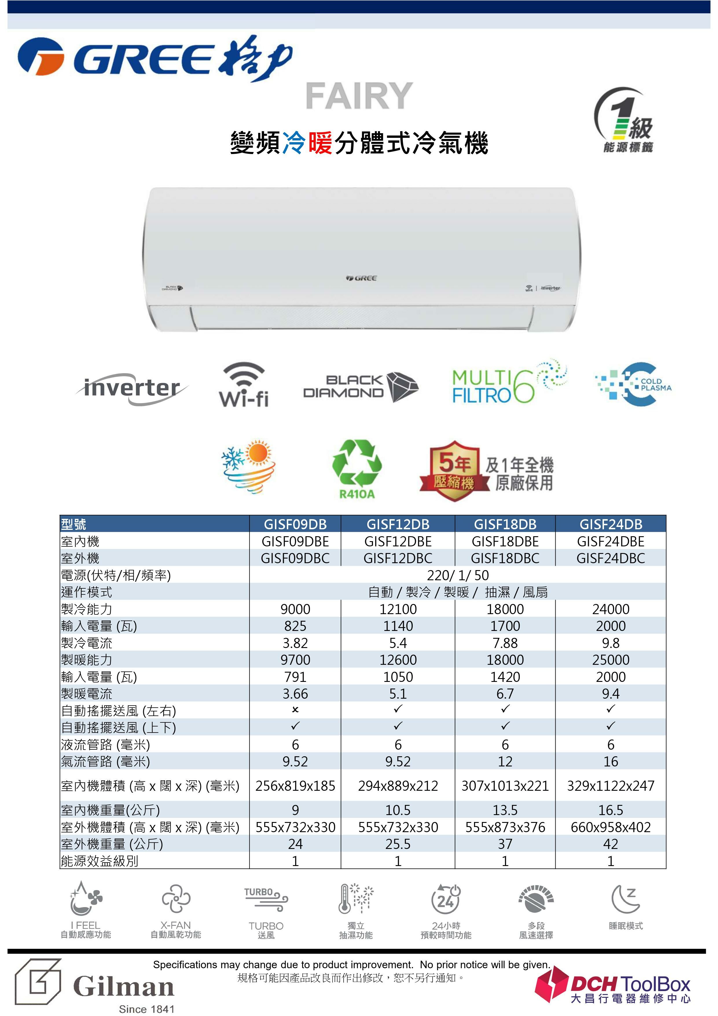 Gree GIS-F18DB‧2HP R410‧ Inverter Split Type Heat Pump Air-Conditioner‧1-year limited warranty, 5-year warranty of Compressor‧