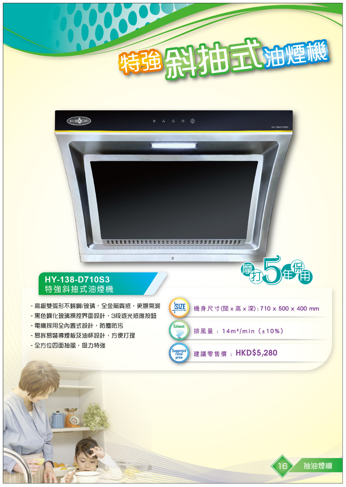 Hibachi HY-138-D710S3‧Inclined Chimney Hood‧1-year limited warranty‧