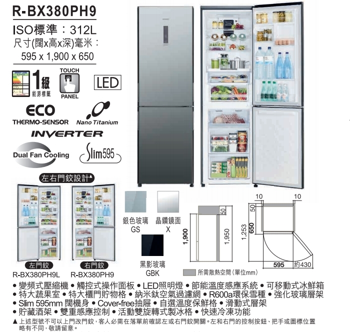 Dimensions: 595(W) x 1,900(H) x 650(D) mm