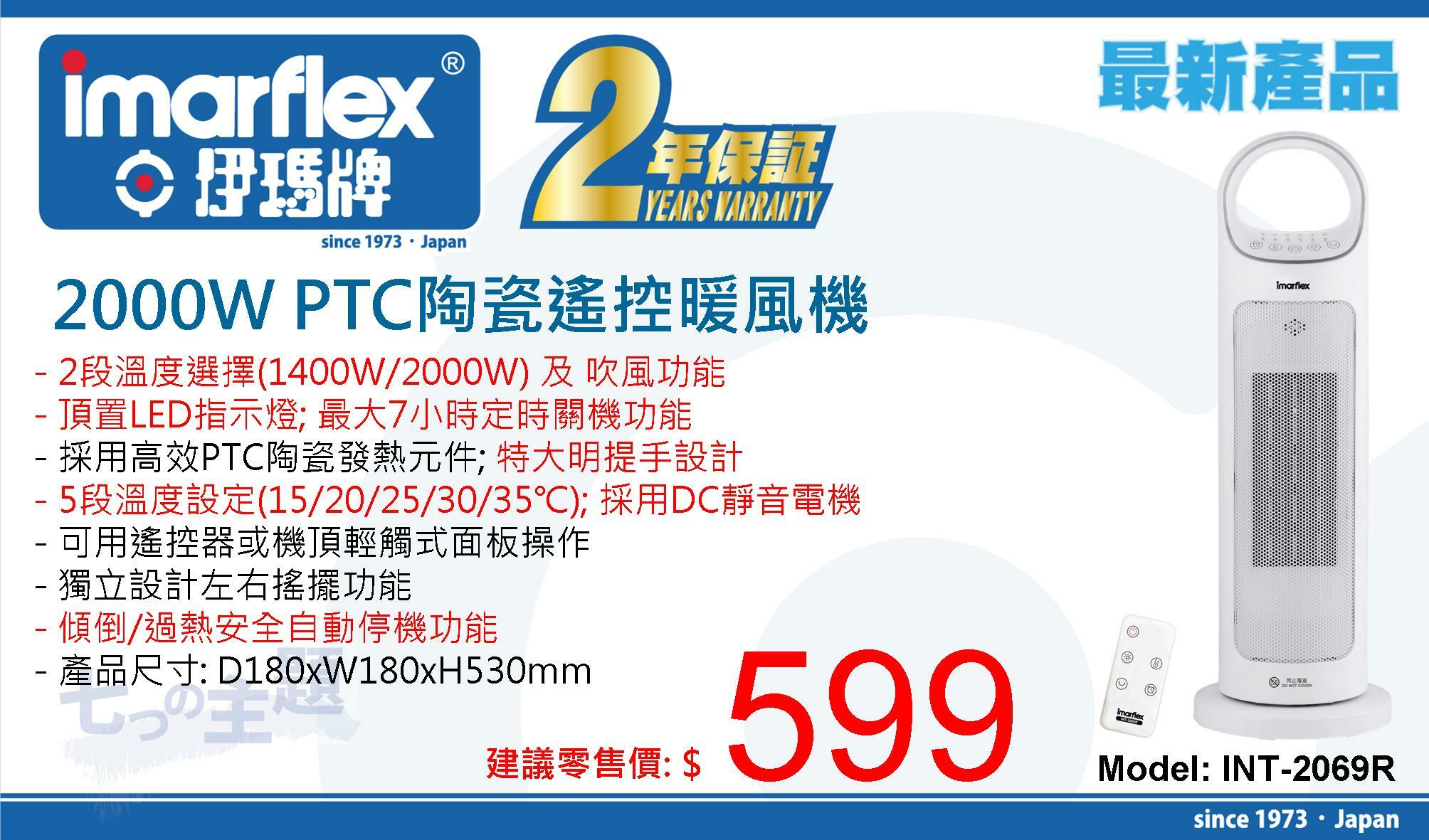 Imarflex INT-2069R‧PTC ceramic remote control heater‧2000W‧remote control‧2-year limited warranty‧