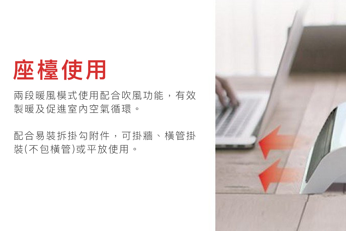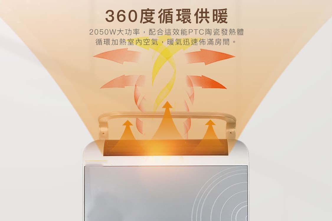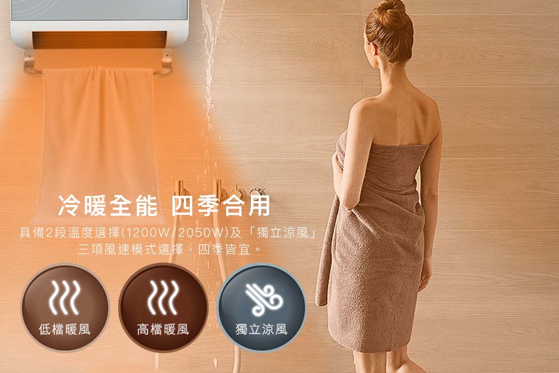 2-stage temperature selection (1200W/2050W) and independent blower design