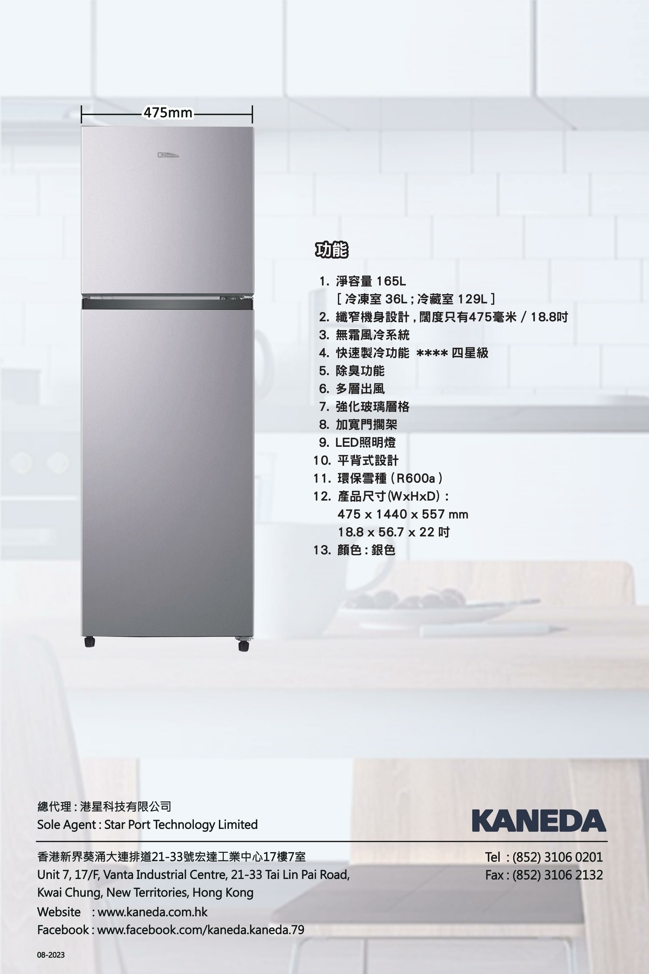 Kaneda KF-188 ‧Top Freezer Refrigerator‧165L‧1-year limited warranty‧