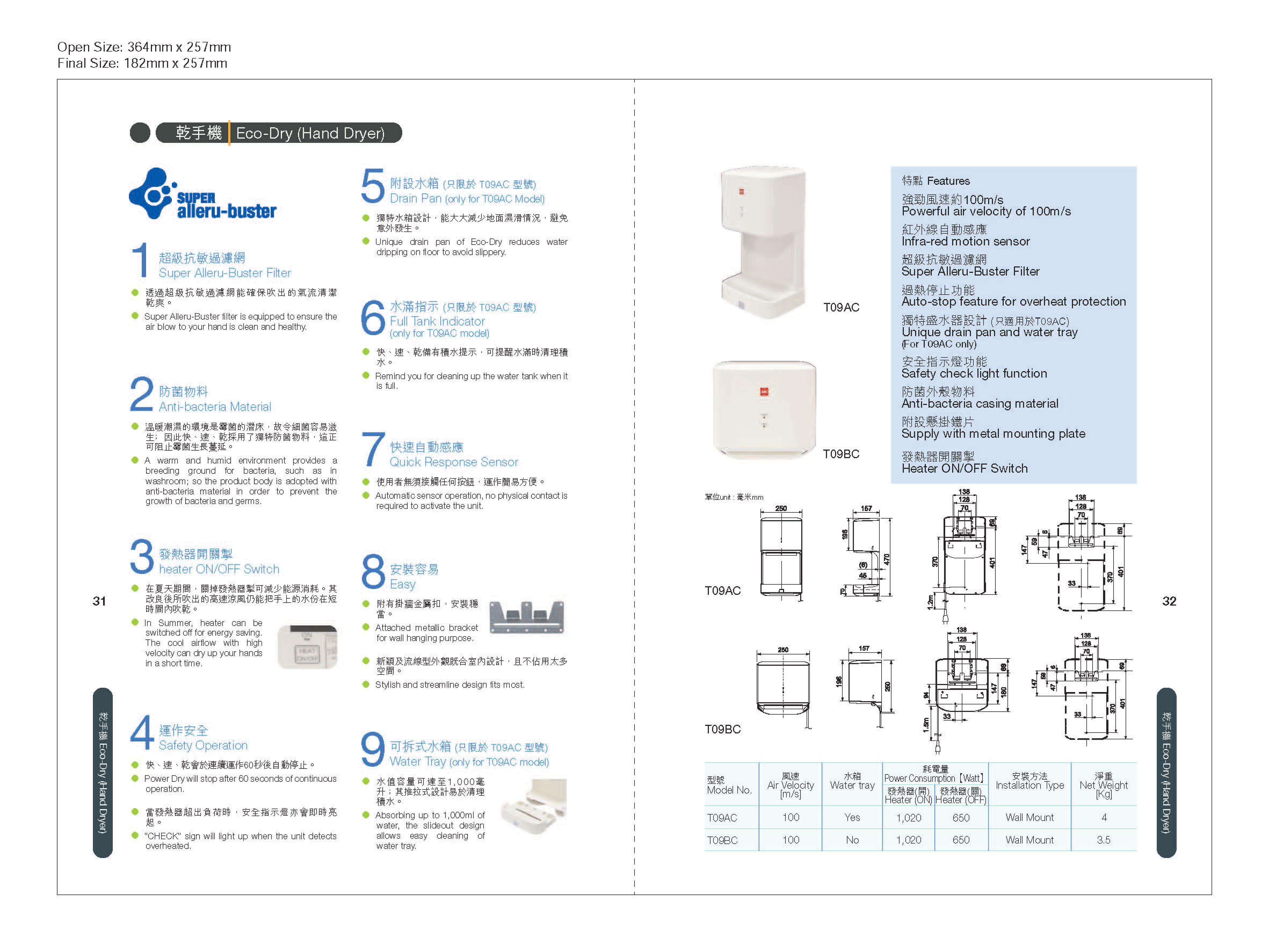 KDK T09AC‧Hand Dryer‧with Drain Pan‧1020W‧1-year limited warranty‧