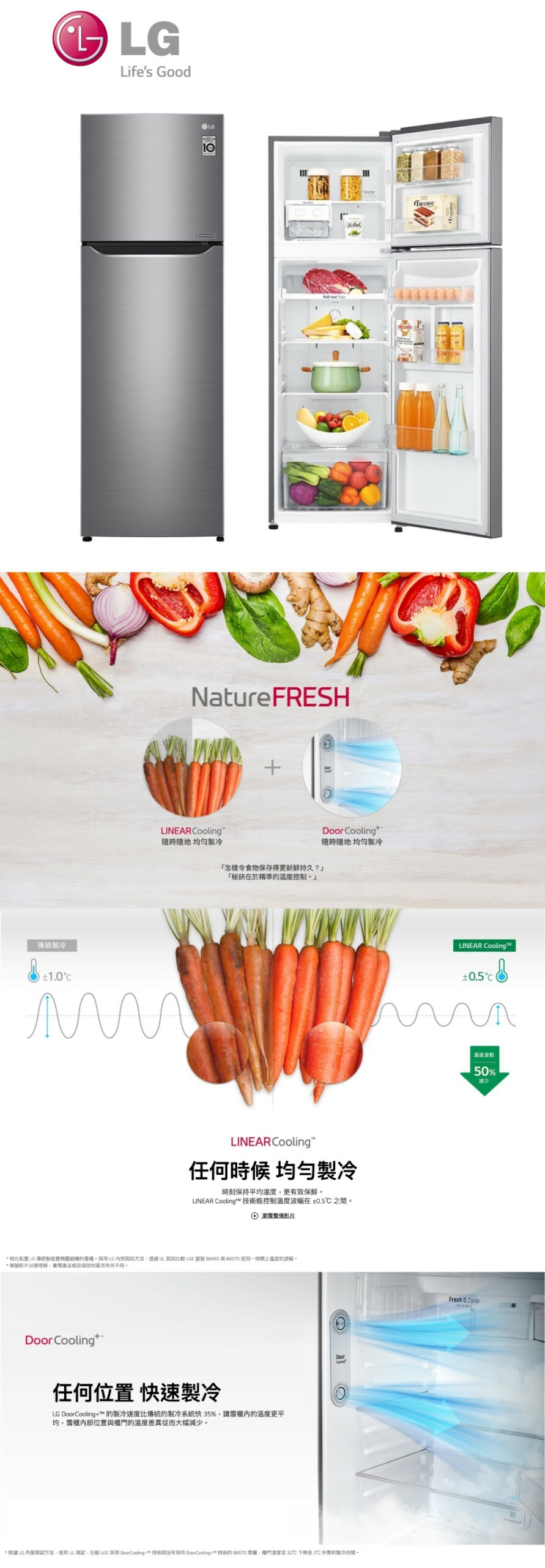 LG B271S13‧2-door Inverter Compressor Refrigerator‧Bottom Freezer‧253L‧3-year limited warranty ,10years Compressor warranty‧