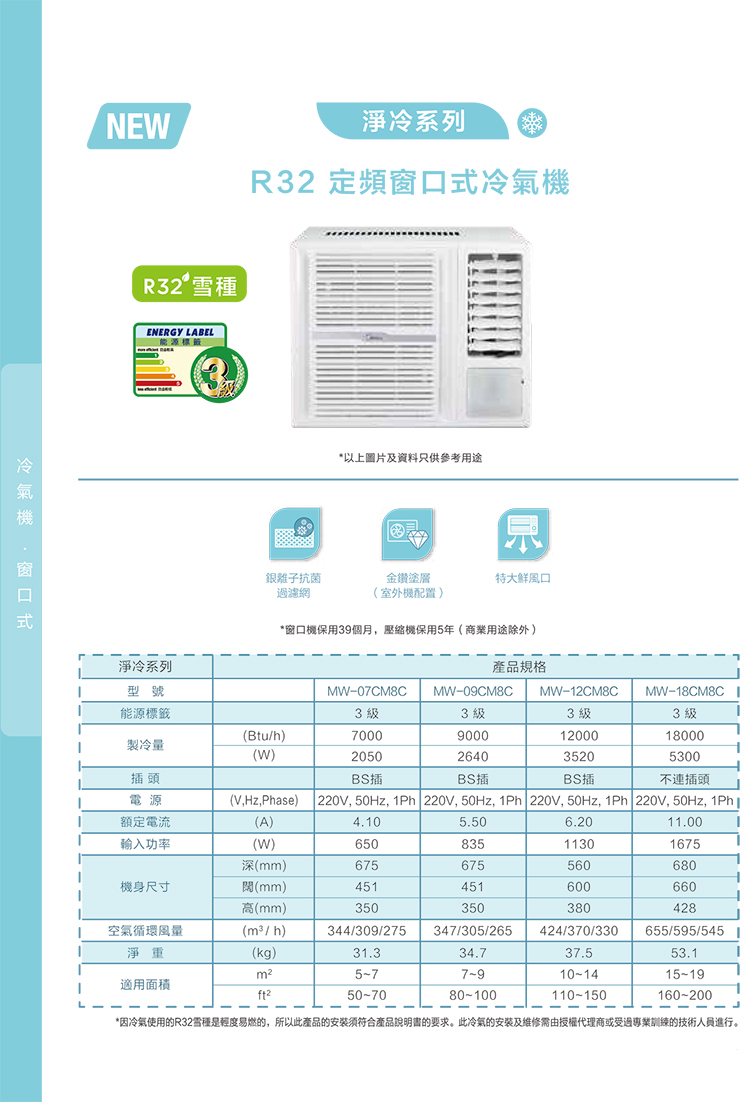 Midea MW-18CM8C‧2HP Window Type Air-Conditioner‧39 months limited warranty,5 years Compressor warranty‧