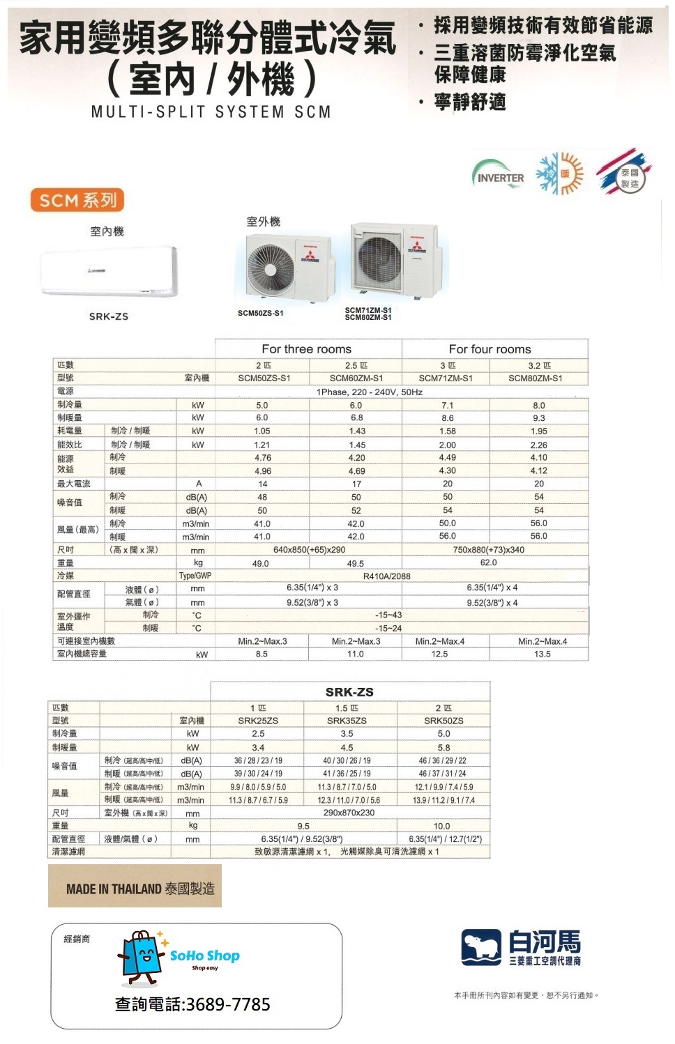 三菱重工空調高級系列壁掛式變頻熱泵 240V~50Hz