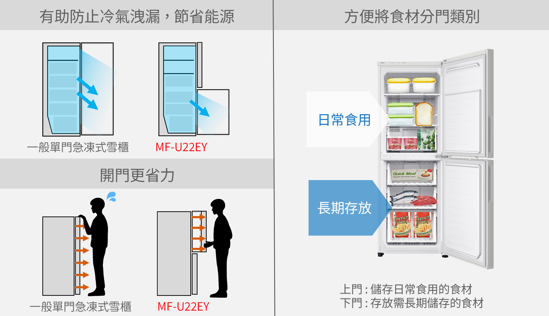 Mitsubishi Electric MF-U22EY‧2-Door Inverter Freezer‧153L‧5-year limited warranty‧