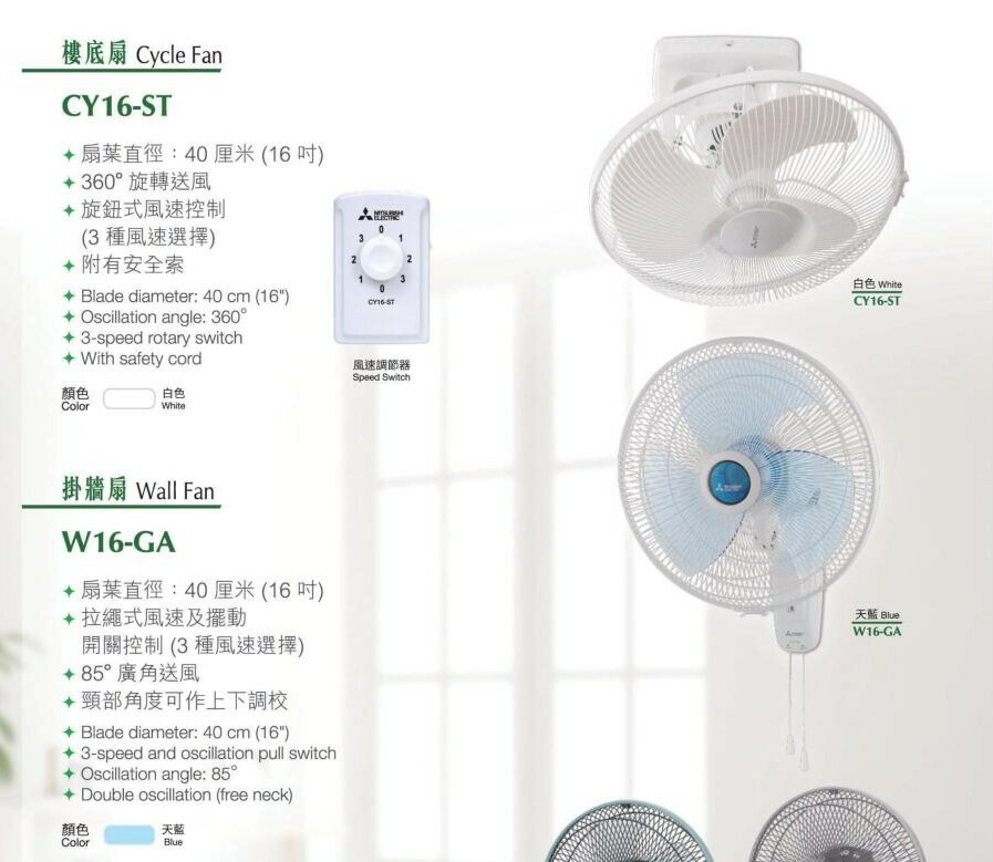Mitsubishi Electric W16-GA‧pull switch Wall Fan‧Blade Diameter: 40cm/16"‧1-year limited warranty‧