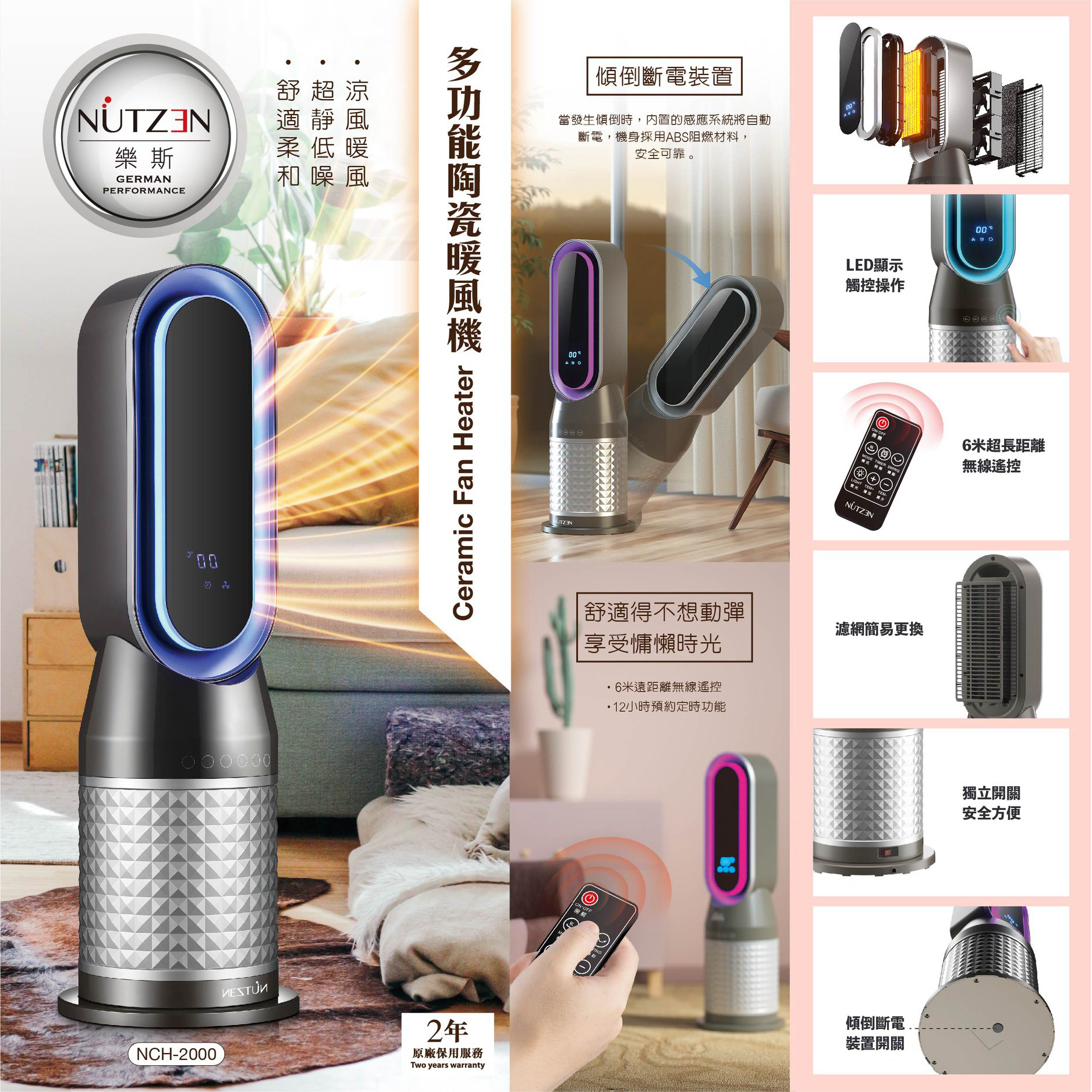 Nutzen NCH-2000‧CERAMIC FAN HEATER‧2000W‧remote control‧