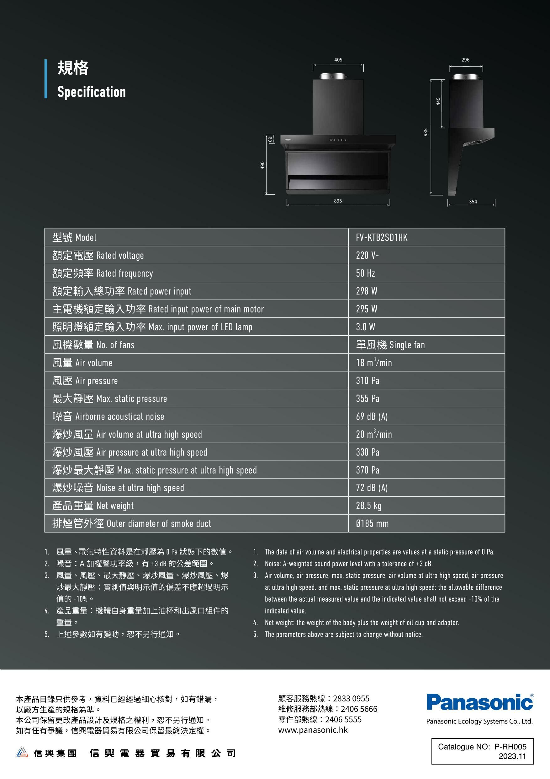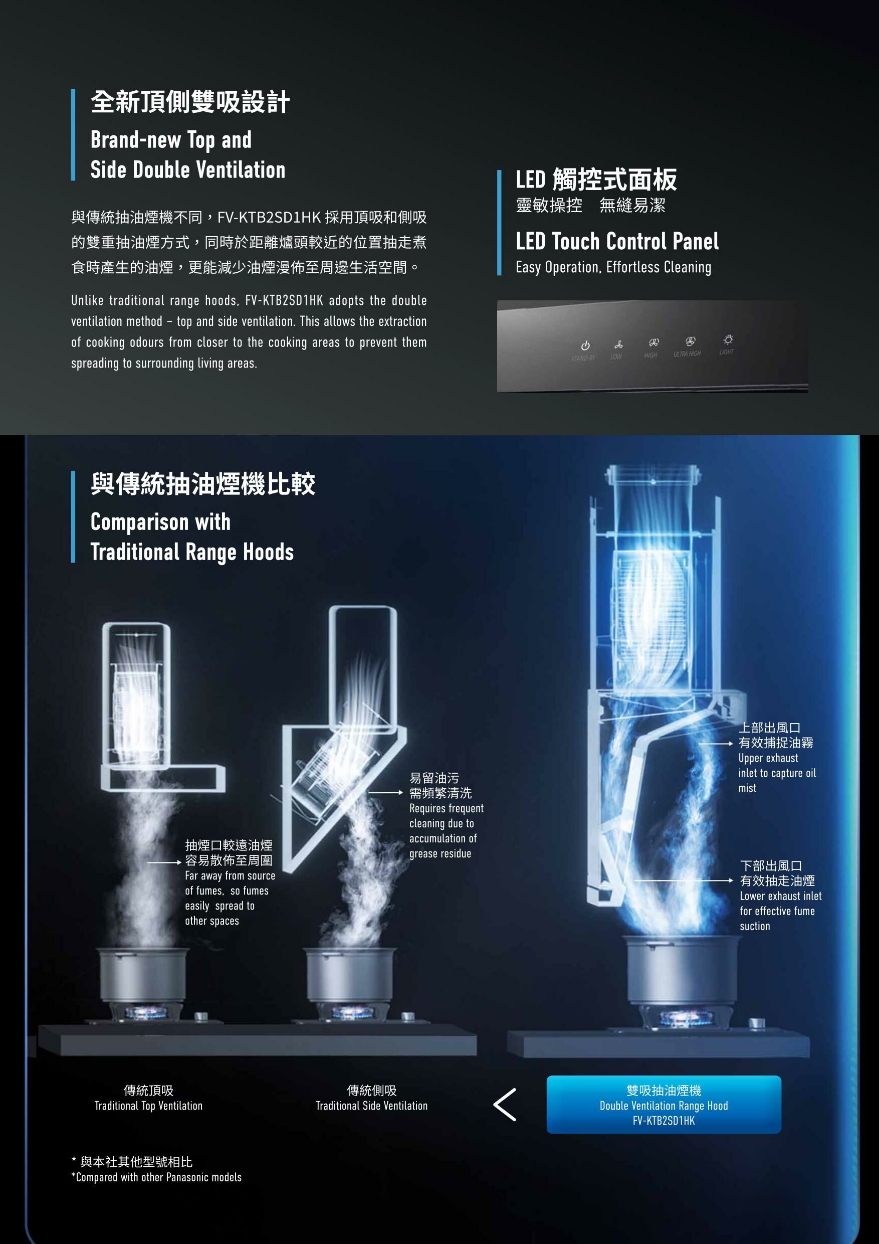 Panasonic FV-KTB2SD1HK‧Double Ventilation Range Hood‧1-year limited warranty‧