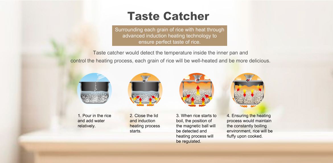 • Taste Catcher Technology from Panasonic to control the temperature and cooking power inside the inner pan, which ensures each grain of rice can be well-heated, more delicious and fluffy