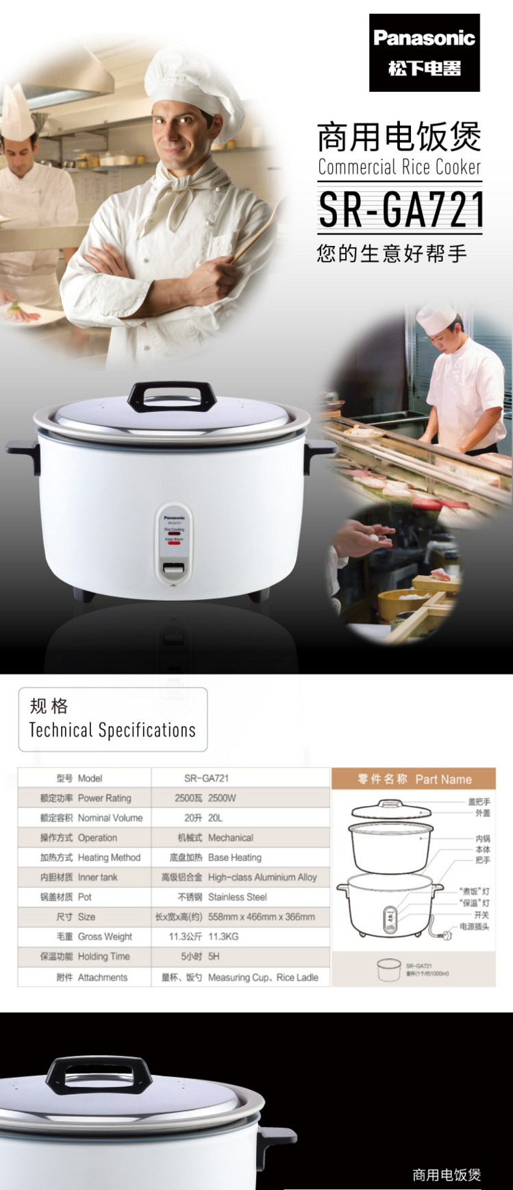 Panasonic SR-GA721‧Aluminum Inner Pan Rice Cooker‧7.2L‧2-year warranty in Hong Kong and Macau‧