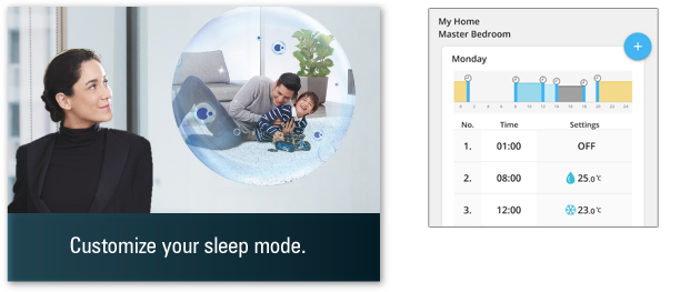 Usually, the body temperature drops sharply several hours later after you fall asleep. Using weekly timer, you can customize your own sleep mode to enhance the quality of sleep.