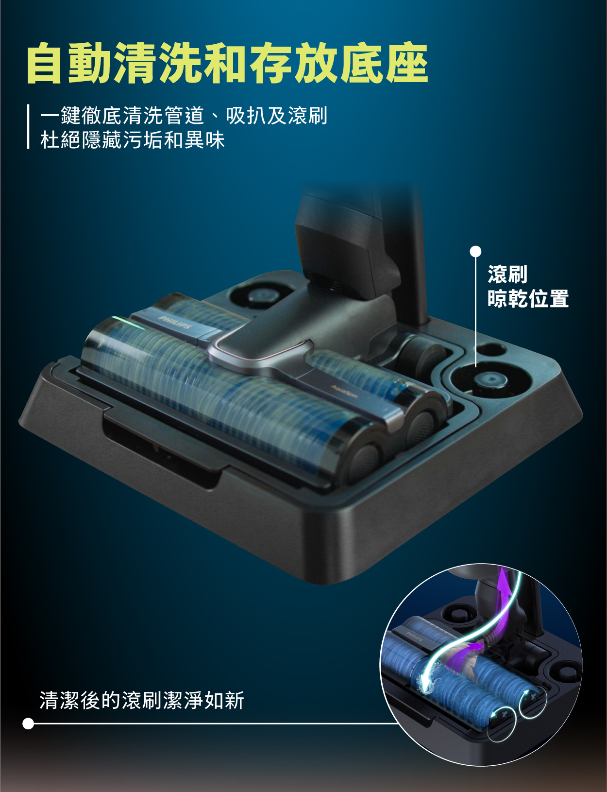 Once your cleaning session is complete, simply place the appliance on the After-Clean & Storage station for an automated self-cleaning cycle that fully rinses the appliance and the Power Brushes. Once done, you can keep the whole system including the Power Brushes stored together so that it is all clean and ready for the next use.