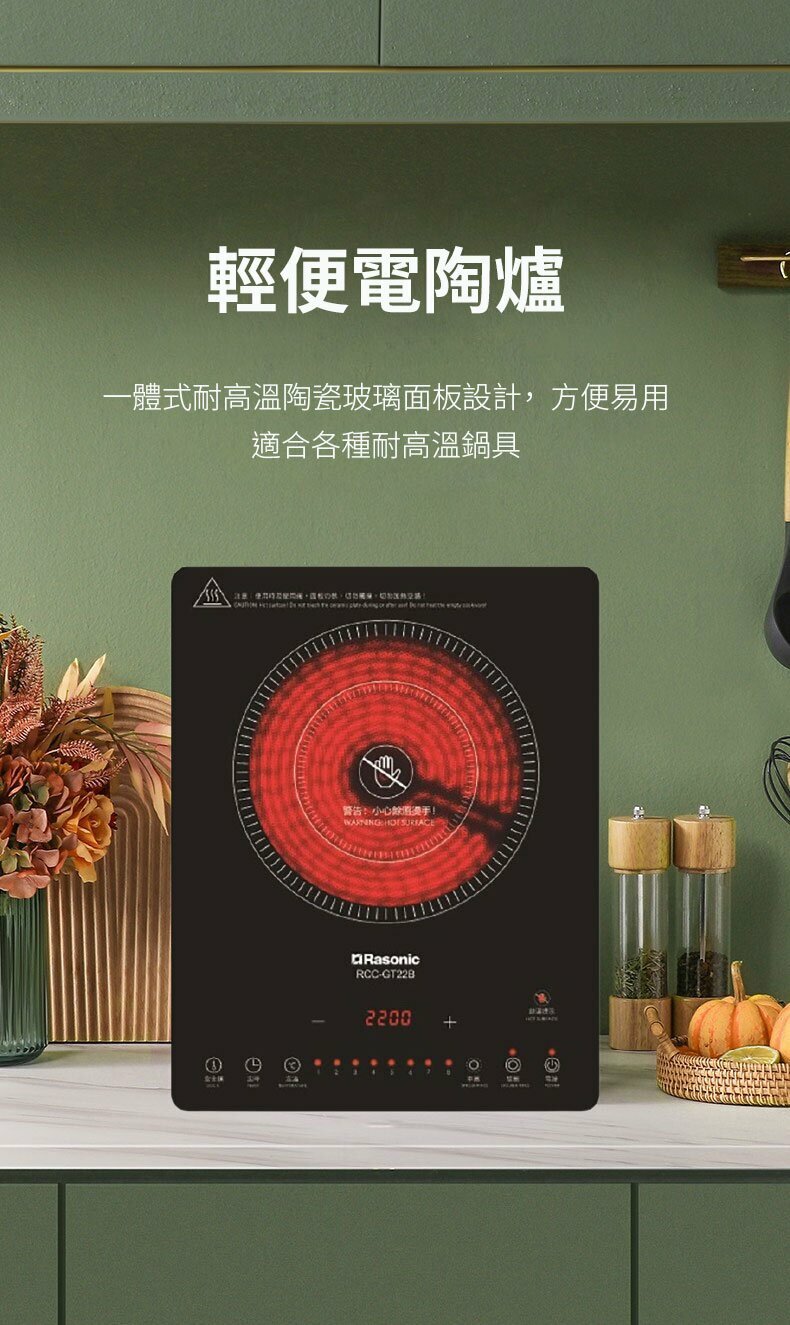 Rasonic RCC-GT22B‧Compact Ceramic Cooker‧2200W‧1-year limited warranty‧