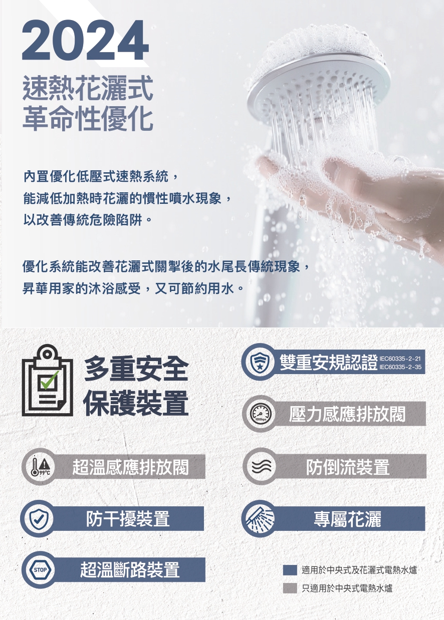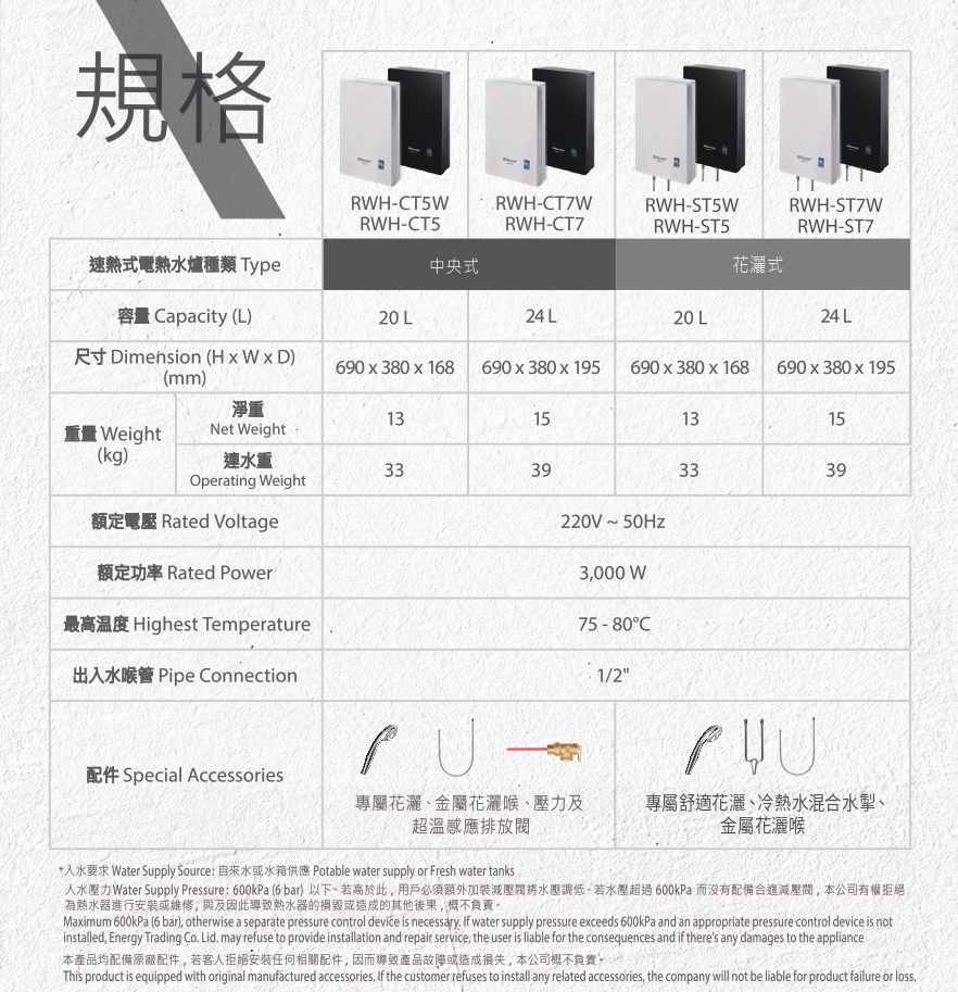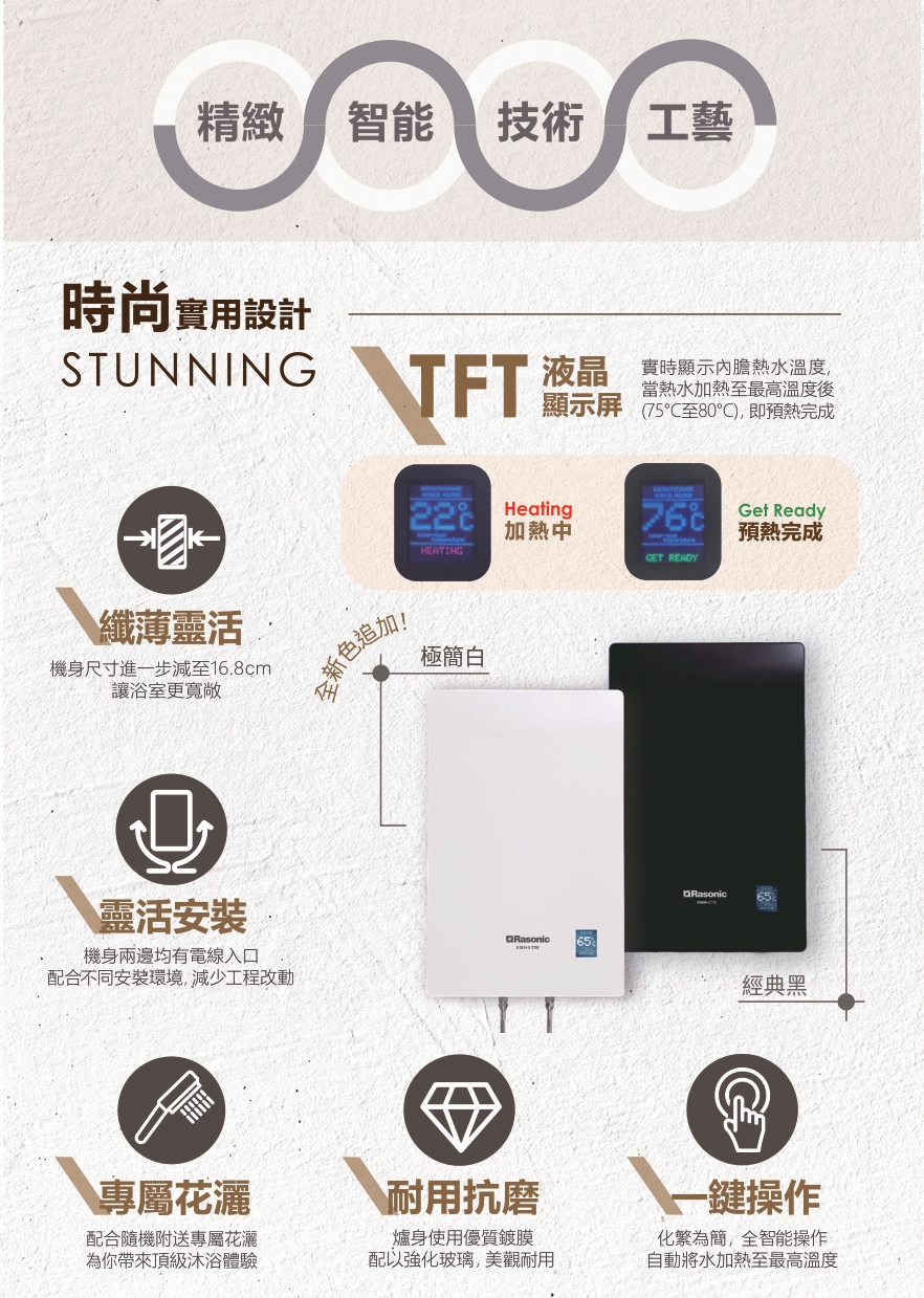 Rasonic RWH-ST7‧Slim Rapid Heating Shower Type‧Rapid Fast-Flow‧24L‧1-year limited warranty‧