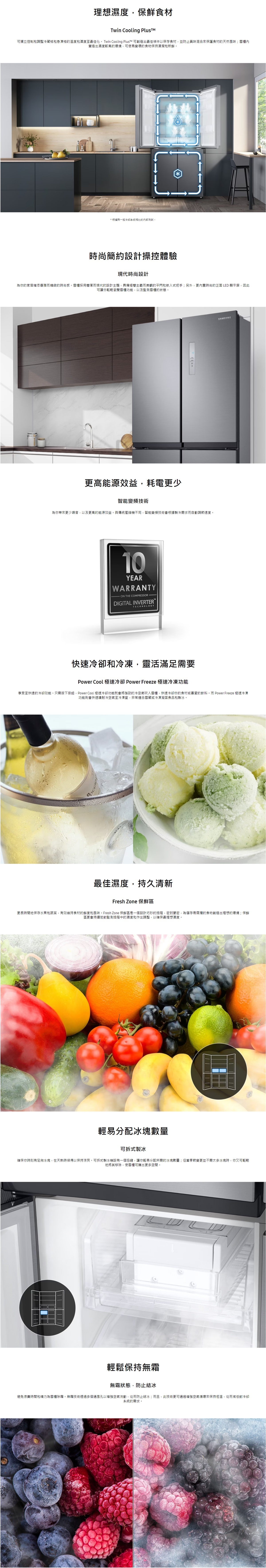 Optimize the temperature and humidity in the fridge and freezer using independent cooling. Twin Cooling Plus™ preserves food in the optimal conditions and protects its natural flavor by preventing odors from mixing. With a high humidity level in the fridge perishable food stays moist and fresh.