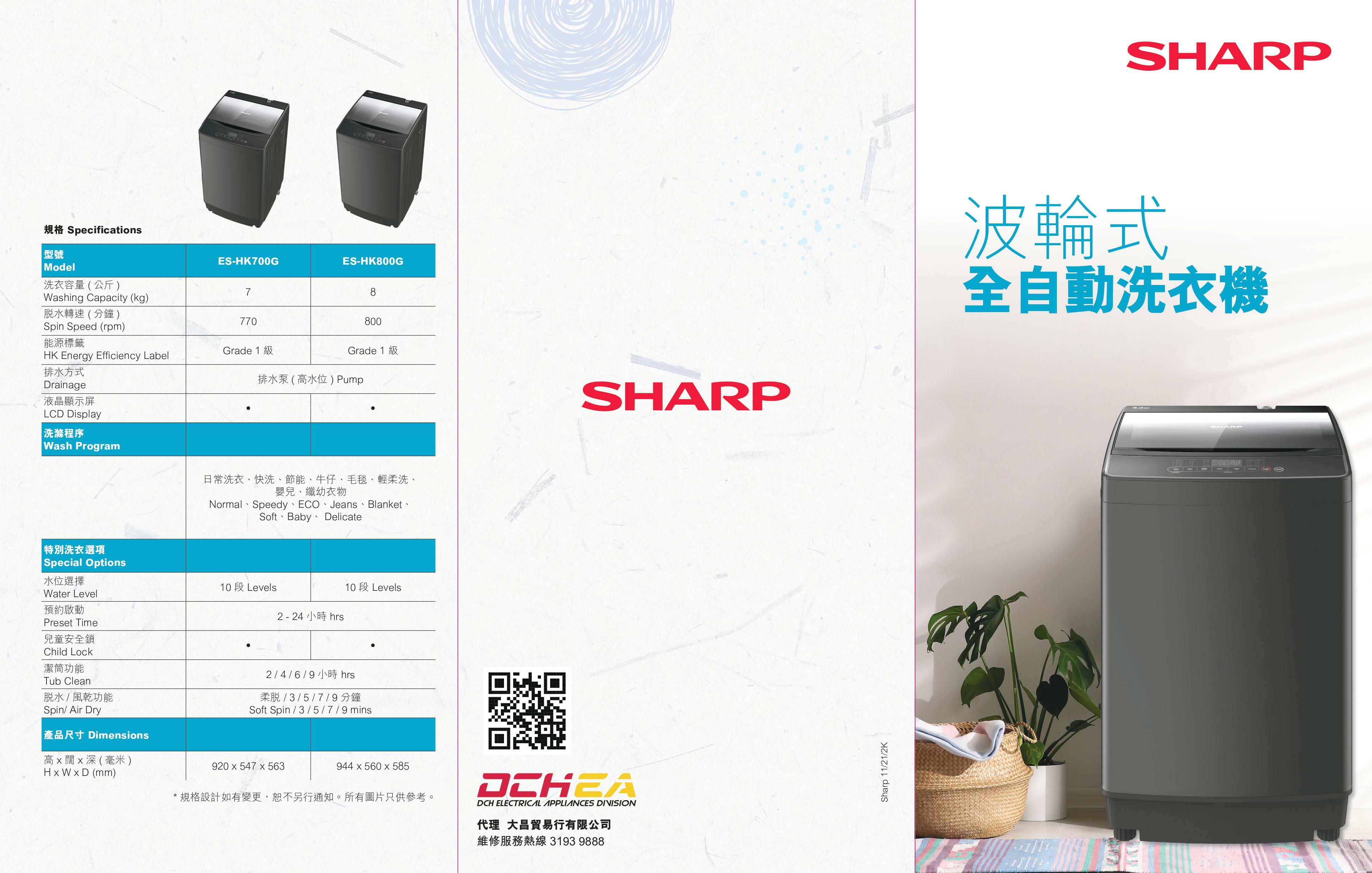 Sharp ES-HK700G‧Automatic Washer‧With Pump‧7KG‧2-year limited warranty‧