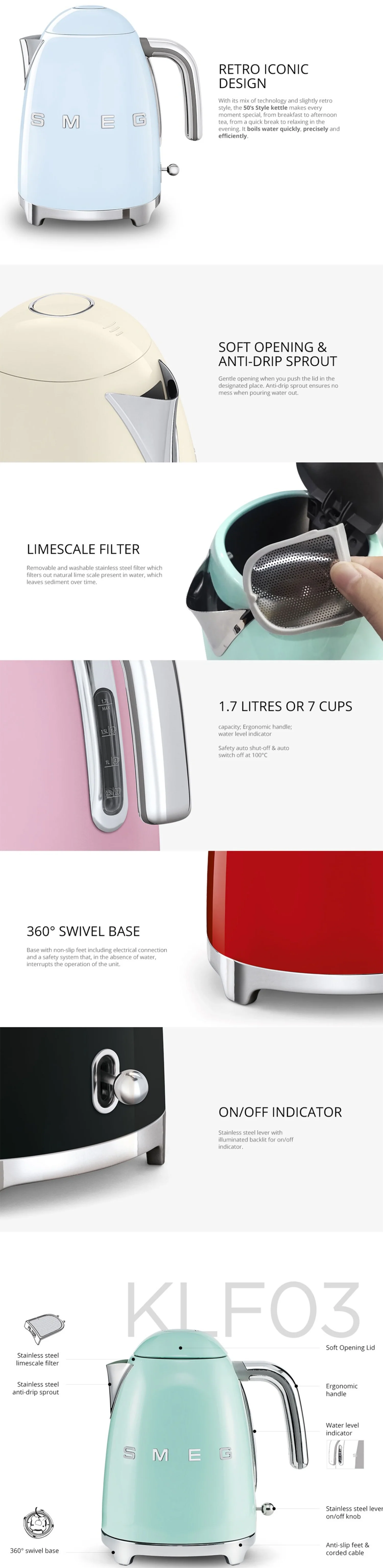 Smeg KLF03RDUK‧50's Style 1.7L Electric Kettle‧2-year warranty in Hong Kong and Macau‧