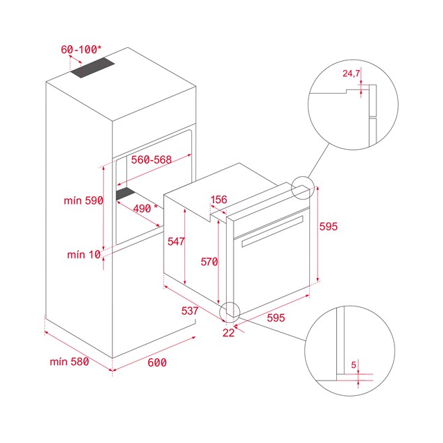 • Dimension (H x W x D): 595 x 595 x 559(mm)