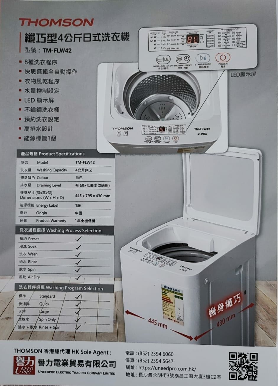 Thomson TM-FLW42‧Automatic Washer‧4kg ‧applicable for high/low water levels‧1-year limited warranty‧