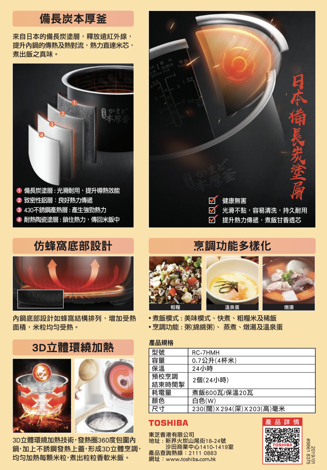 | Menu settings | Congee, Steam, Soup & Boiling Egg |