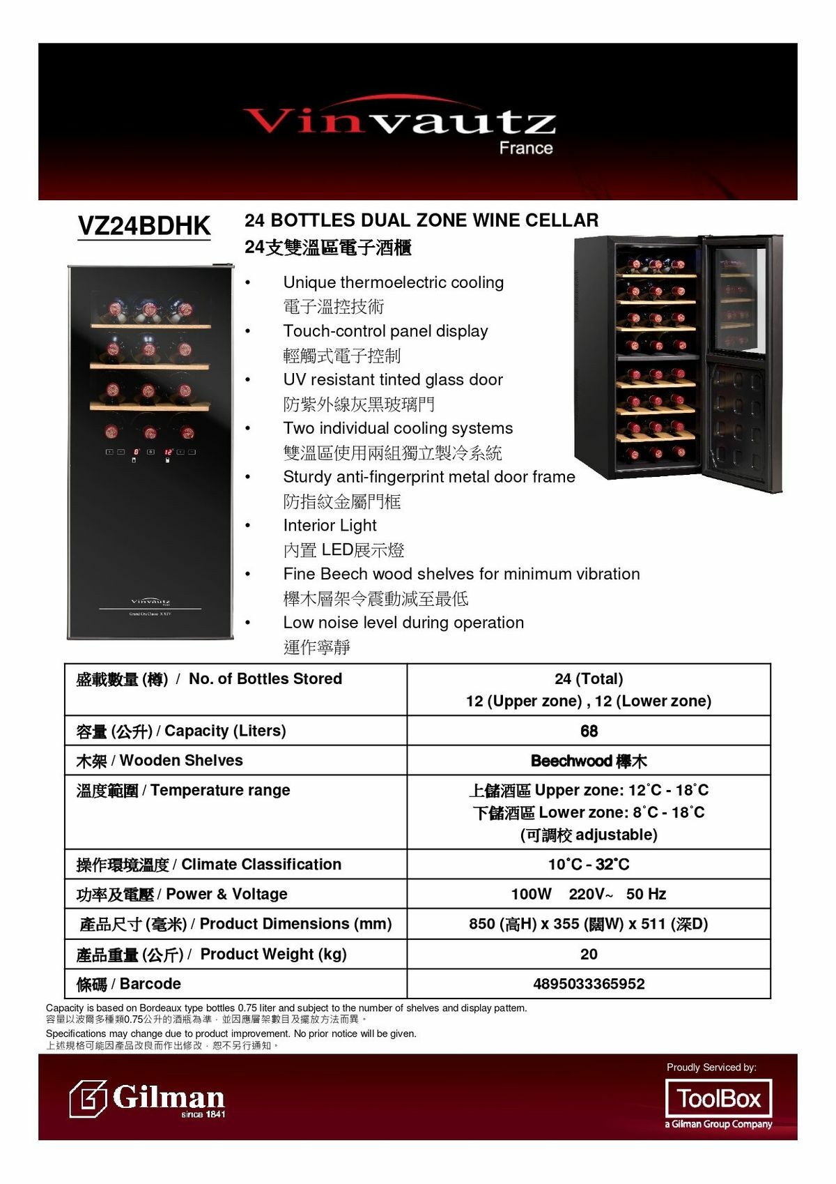 Vinvautz VZ24BDHK‧ Dual Temperature Zone Wine Cooler‧24 Bottles‧2-year limited warranty‧