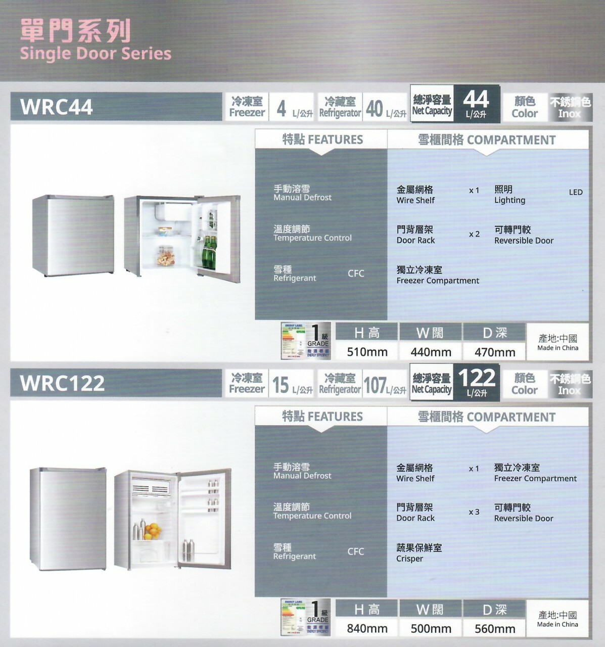 White-Westinghouse WRC122‧Single-door Direct Cooling Fridge‧112L‧3-year limited warranty‧
