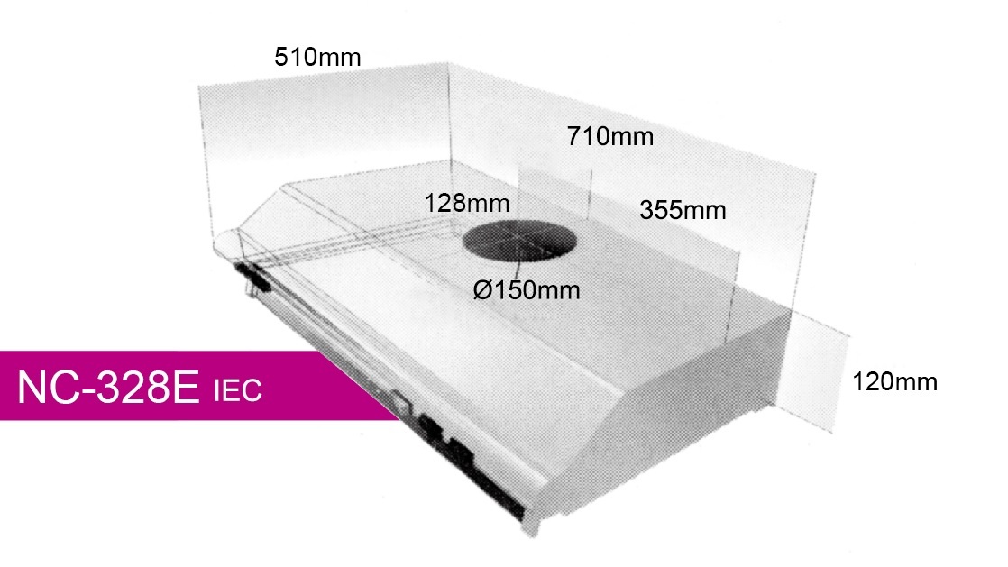 NC-328E IEC: 710mm (W) x 510mm (D) x 120mm (H) /