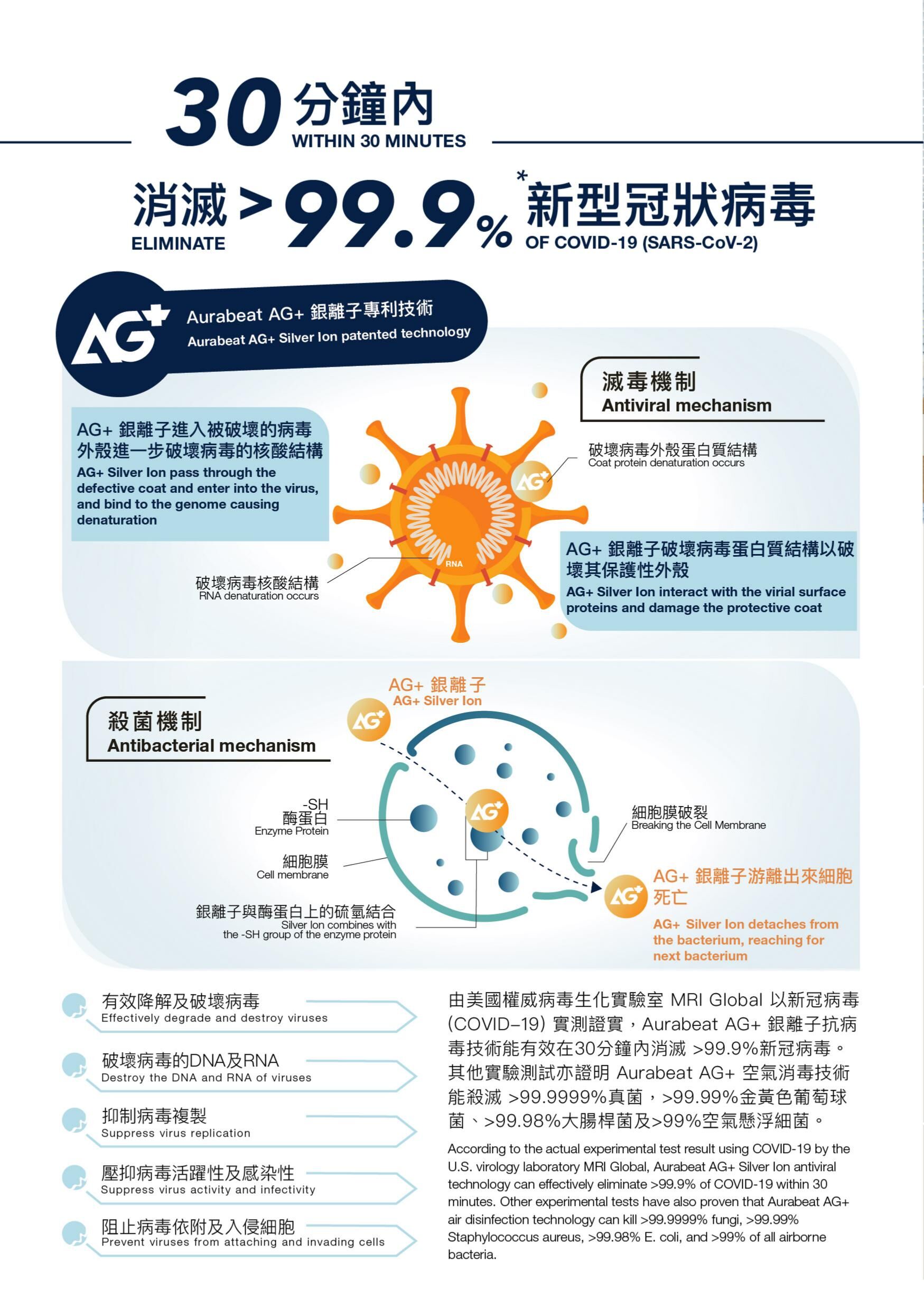以真實新冠病毒進行測試,實驗證明能有效消滅 >99.9% 新冠病毒及其他微生物