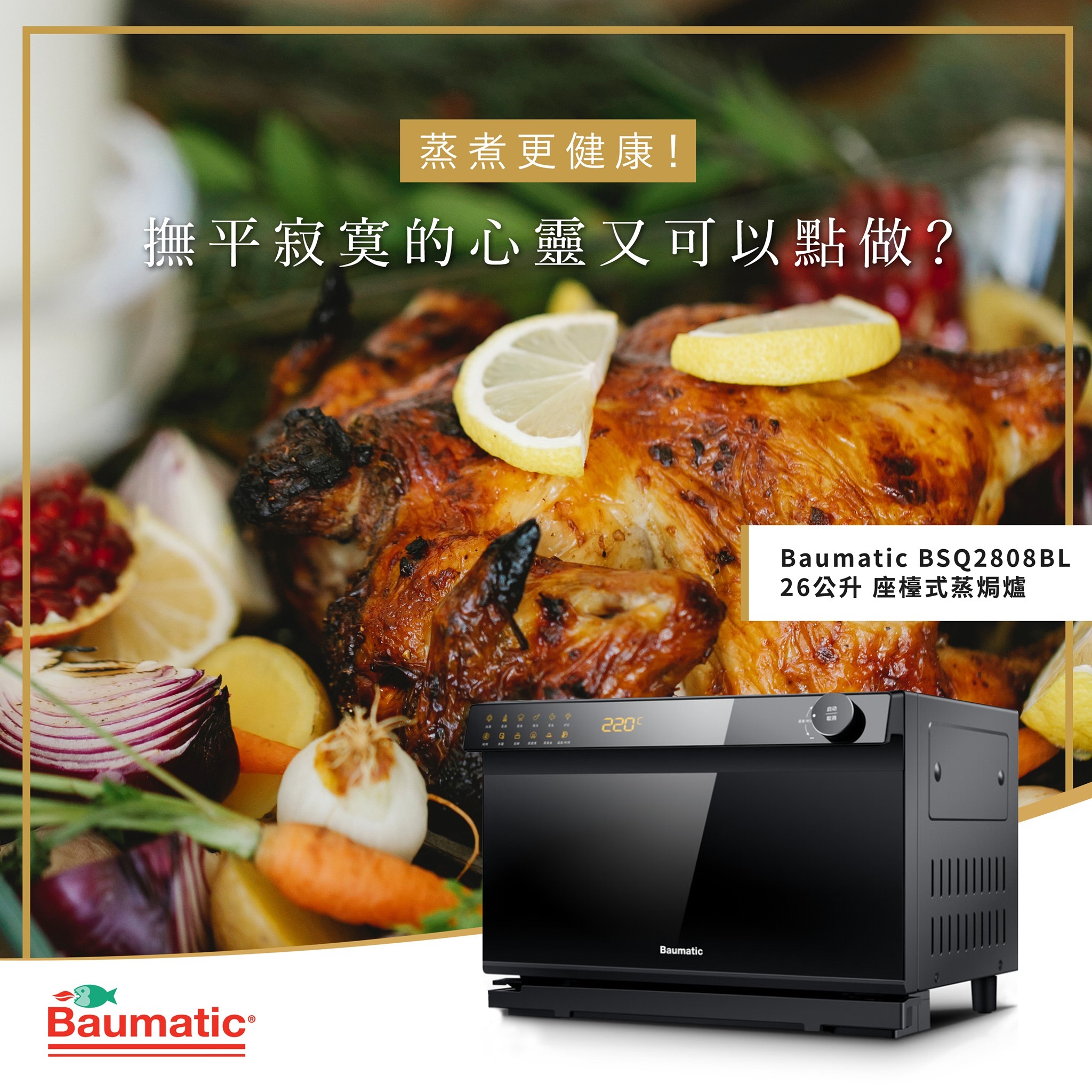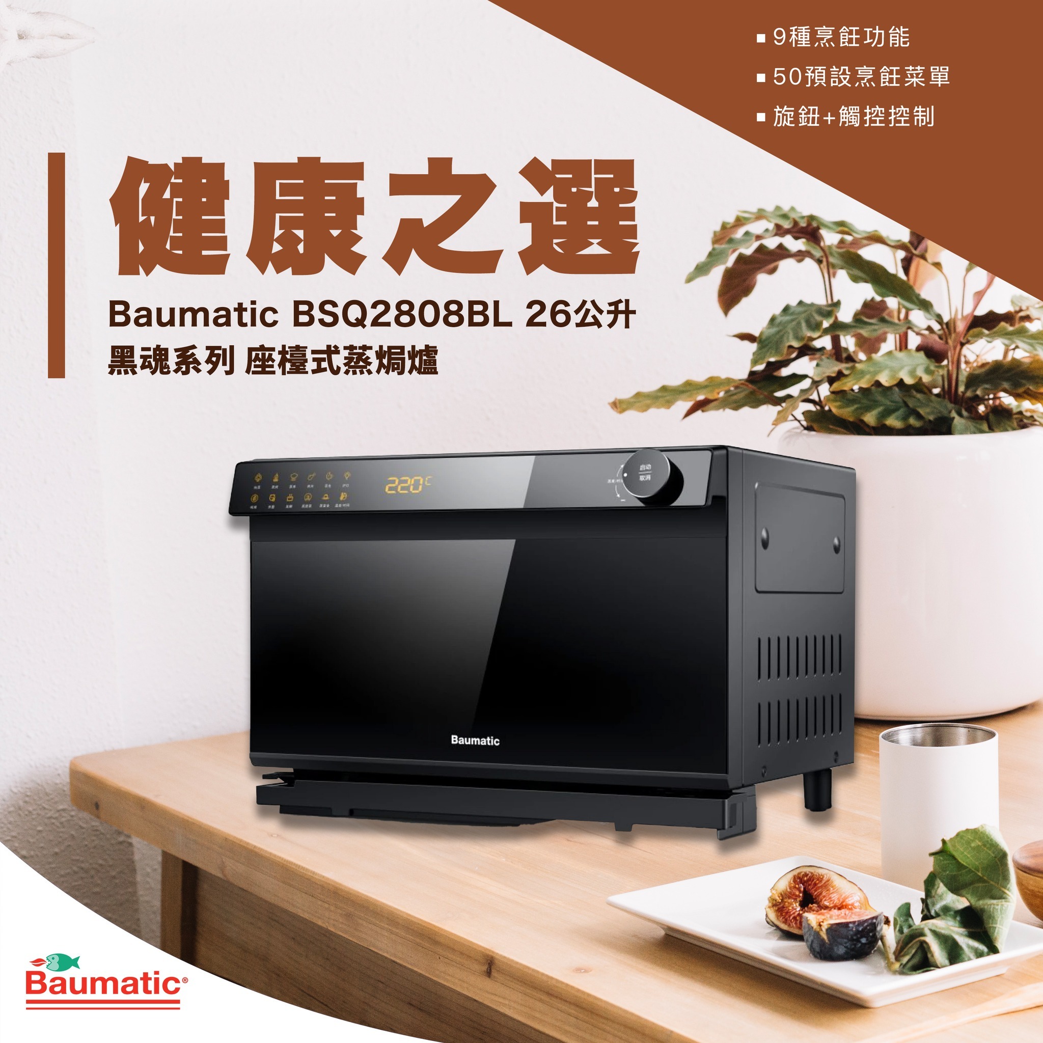 Baumatic BSQ2808BL‧座檯式蒸焗爐(前出排氣)‧26公升‧香港行貨,原廠1年保養‧