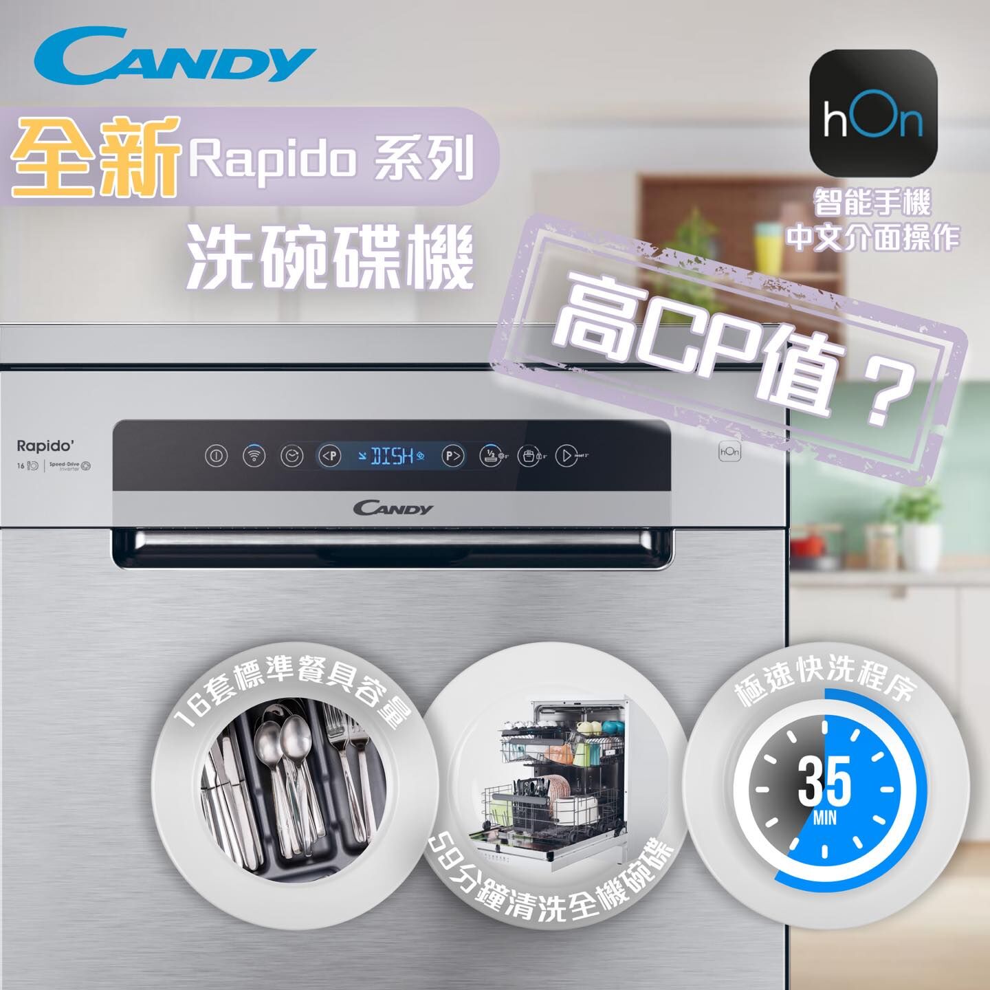 金鼎 Candy CF6C4F0‧智能變頻‧座地式洗碗碟機‧16套餐具‧香港行貨,原廠2年保養‧
