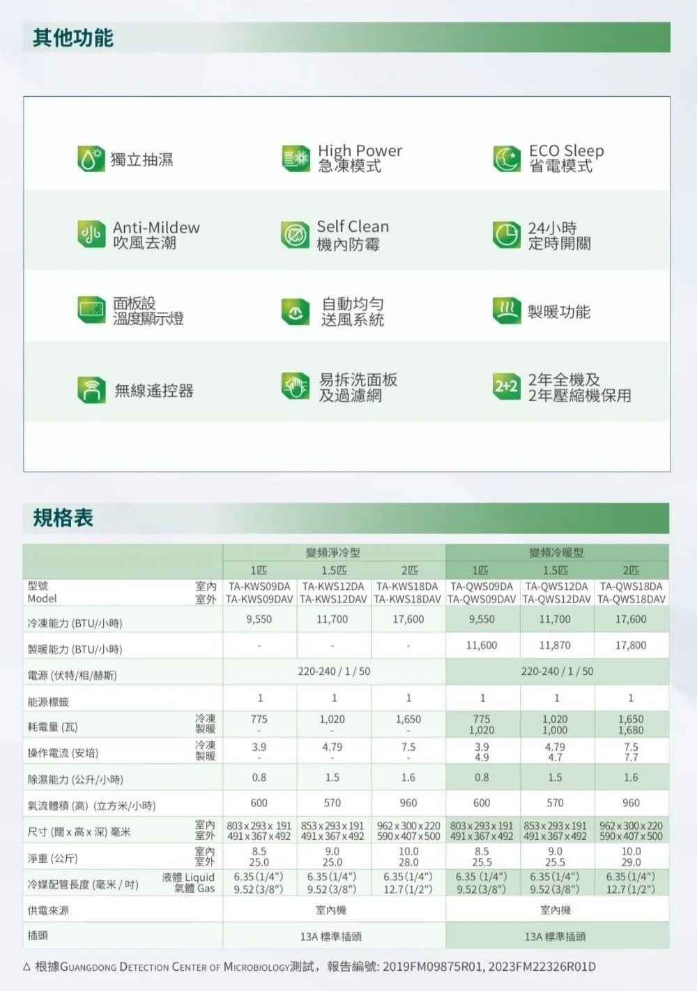 肯特 Canopus TA-KWS18D/TA-KWS18DAVW‧2匹 R32 變頻淨冷‧窗口分體式冷氣機‧香港行貨,原廠2年保養