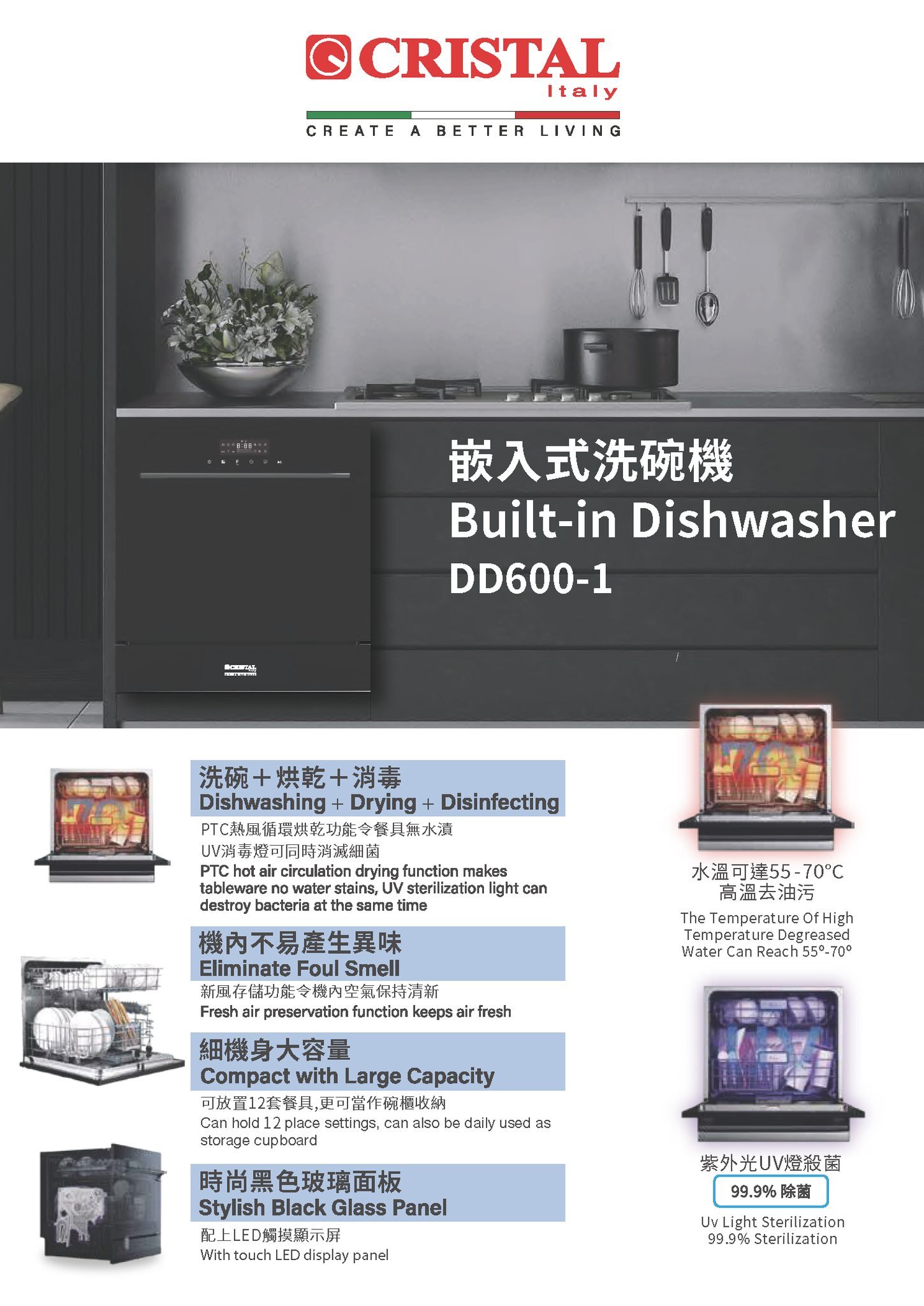 尼斯 Cristal DD600-1‧嵌入式洗碗機‧12套餐具‧香港行貨,原廠1年保養‧