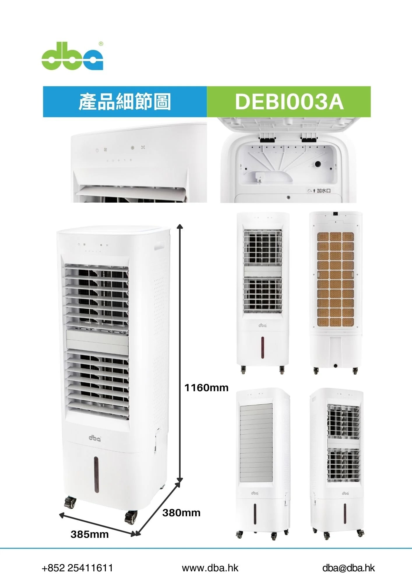 迪比亞 DBA DEBI003A‧移動式水冷風機‧約300-500呎‧25公升儲水箱‧香港行貨,原廠1年保養‧