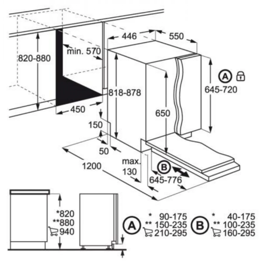 安裝尺寸:高 820-900 x 闊 450 x 深 570 毫米