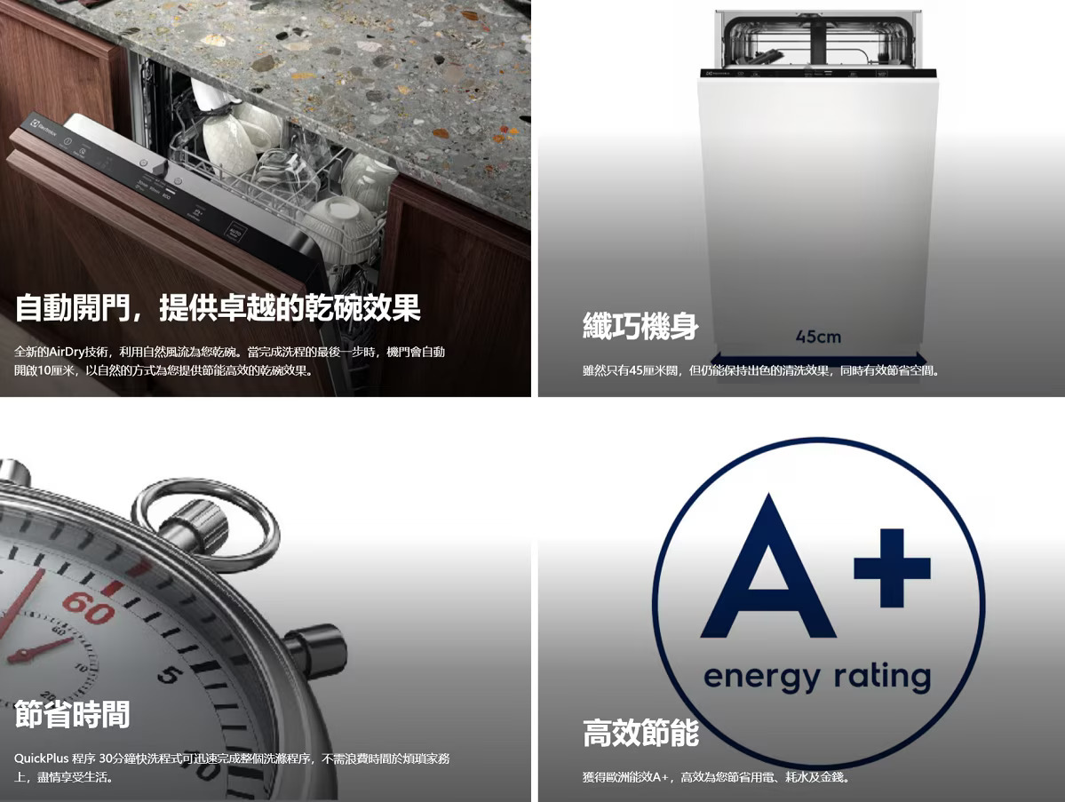 伊萊克斯 Electrolux EEA22100LX‧嵌入式洗碗碟機‧9套餐具‧波蘭製造‧香港行貨,原廠2年保養‧
